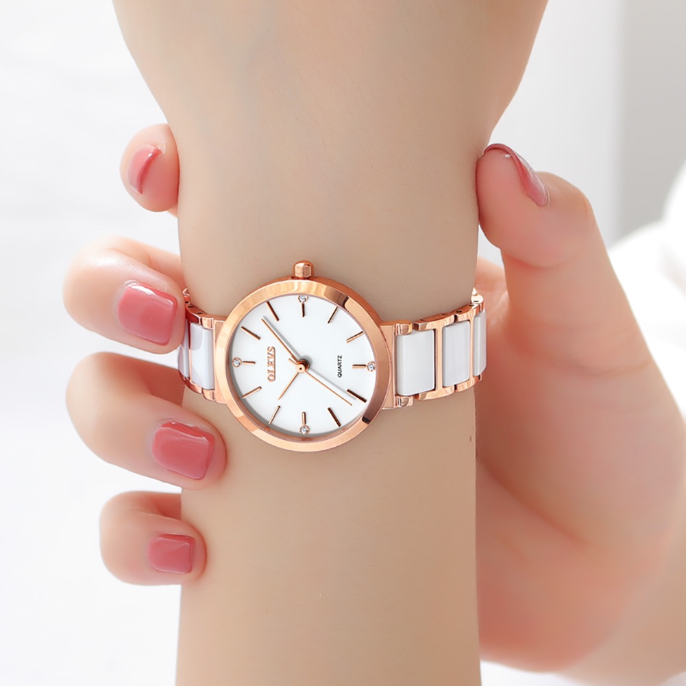 OLEVS Jam Tangan Wanita Original Anti Air Tahan Analog Fashion Terbaru Keramik Watch Women