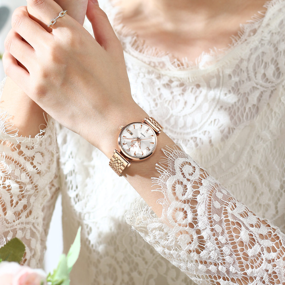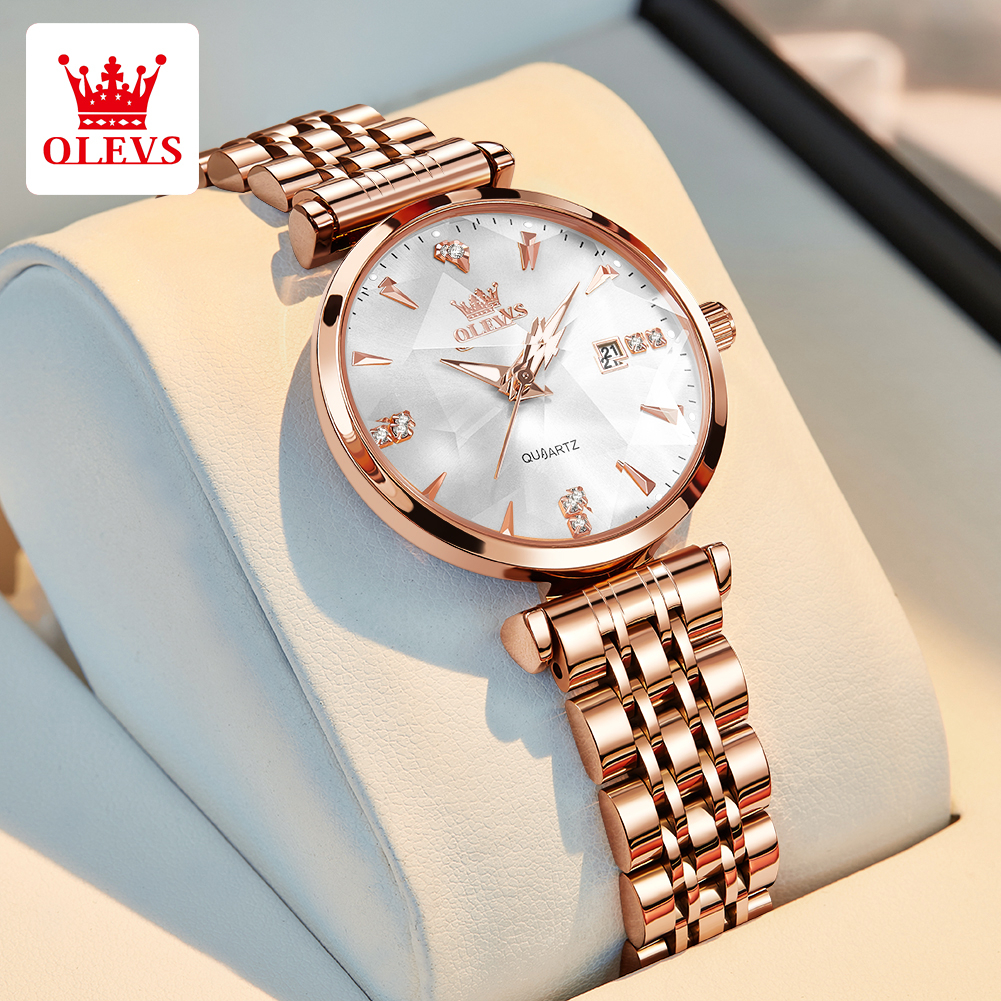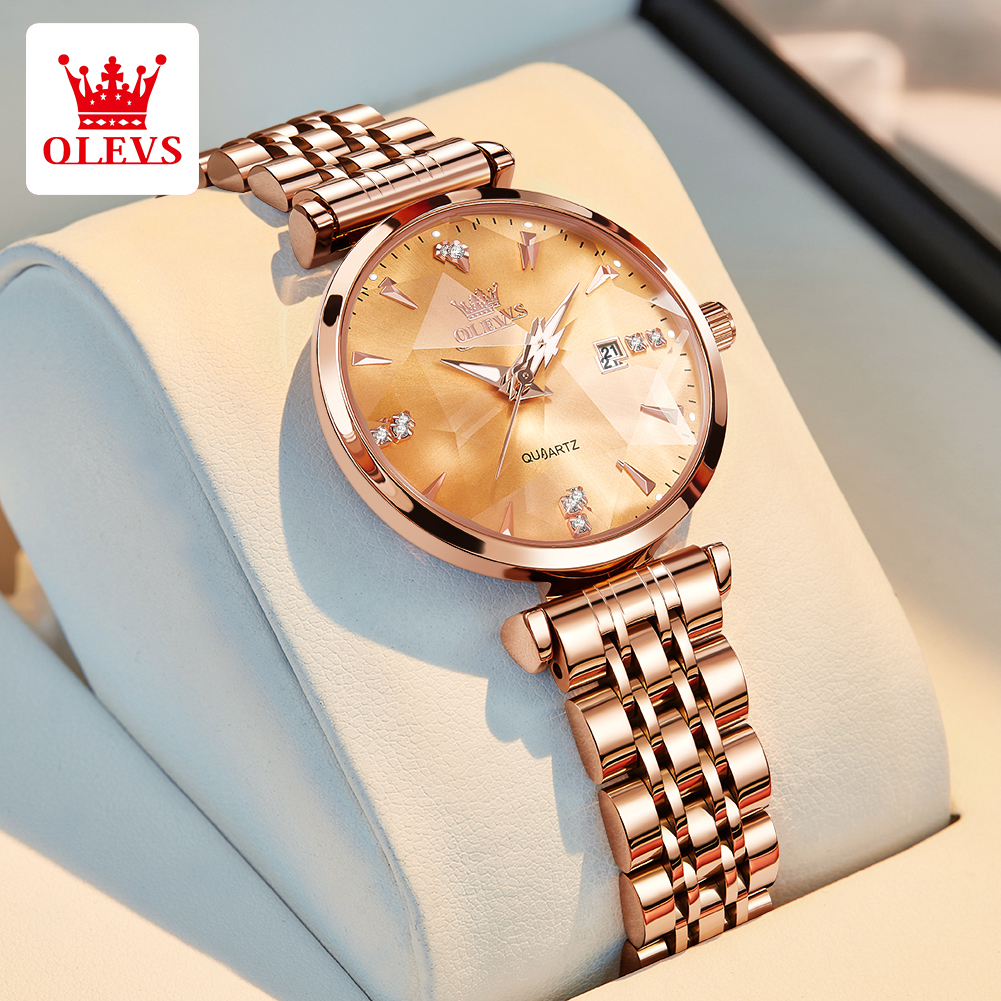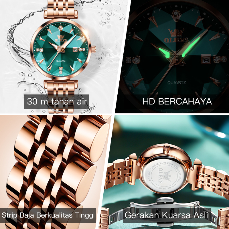 OLEVS Jam Tangan Wanita Anti Air Original Terbaru Korea Permukaan Cermin Prismatik Stainless Steel Watch Women