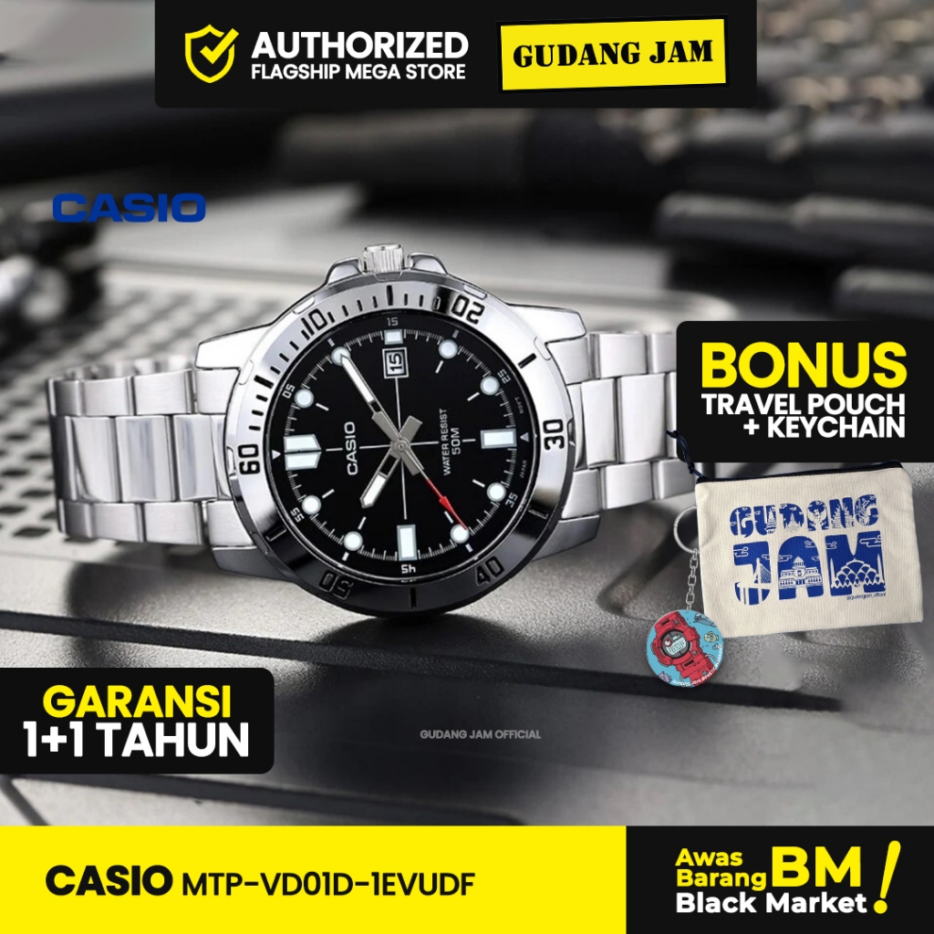 Jam Tangan Pria Casio MTP-VD01D-1EVUDF Black Dial Stainless Steel Band