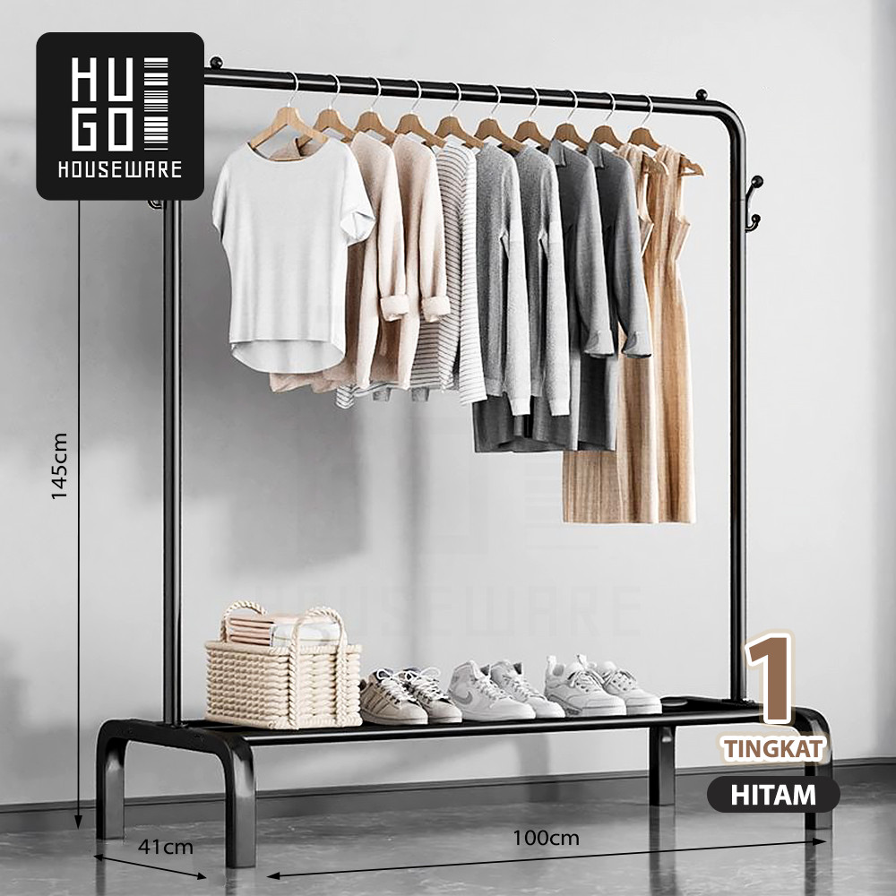 𝐏𝐑𝐎𝐌𝐎 Stand Hanger Baju Gantungan Berdiri Gawang Besi Kayu Butik Display Estetik Minimalis Modern Rapi Kuat