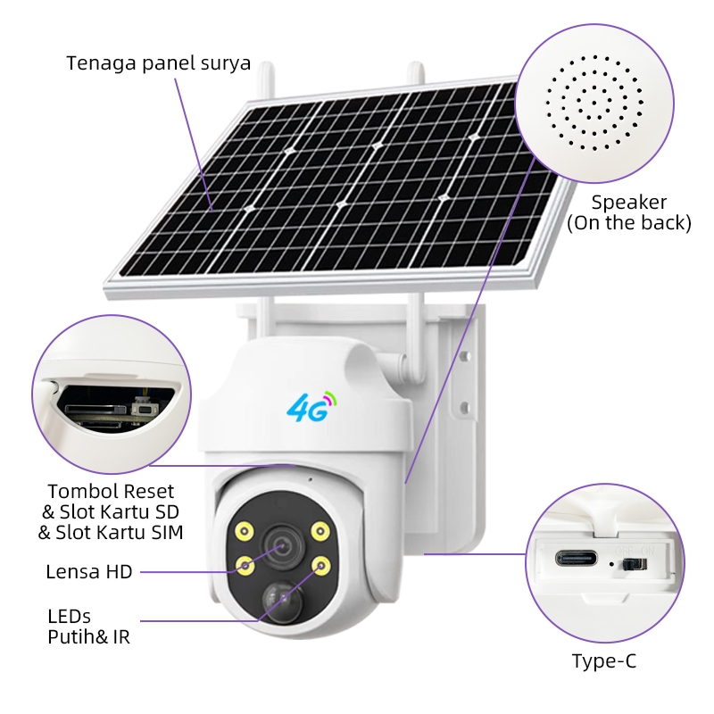 ULINK T1 Pro 4G Kamera Tenaga Surya Solar 3MP Nirkabel Outdoor Tahan Air CCTV PTZ Camera Koneksi dengan Simcard