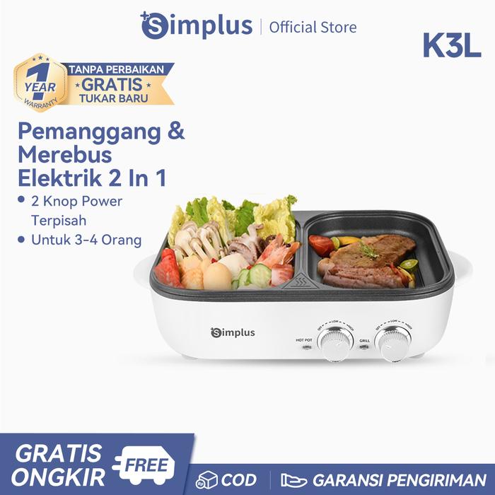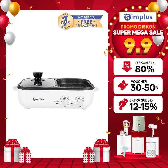 MEGA DEALSSimplus Panci & Pemanggang Elektrik Multifungsi Wajan 2 dalam 1 BBQ grill & Hotpot Low