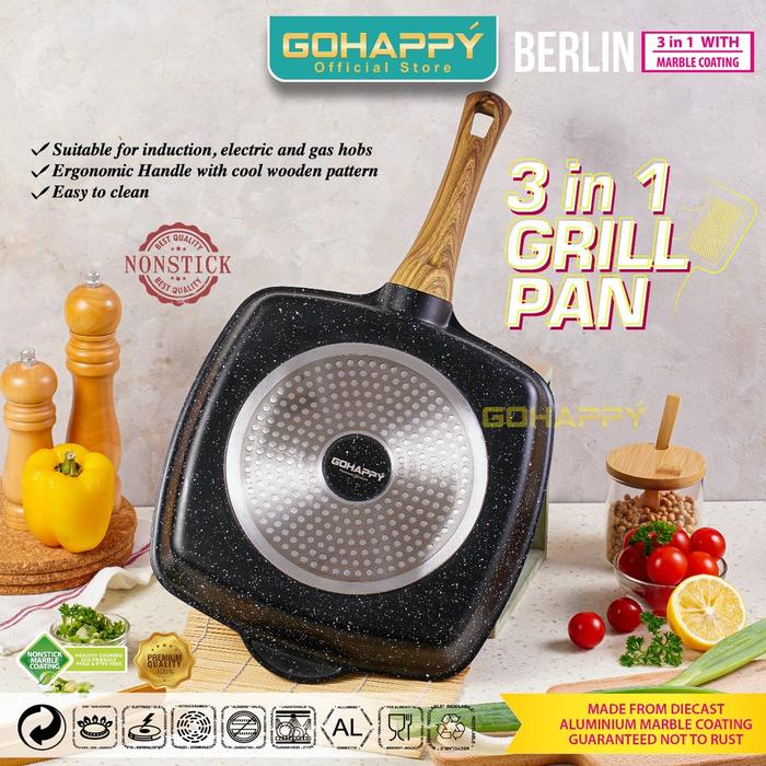 MAYBA Panci Grill Pan Berlin 3 Devided Panggangan Brunch Barbeque Nonstick Alat Pemanggang Bbq
