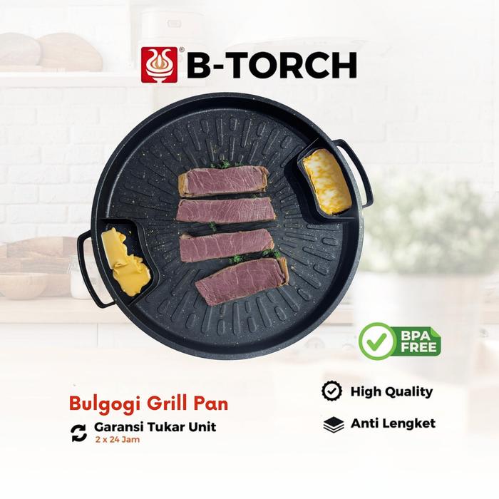 B-TORCH Grill Pan Bulgogi Pan BBQ Aluminium Anti Lengket Alat Panggangan Kitchenware