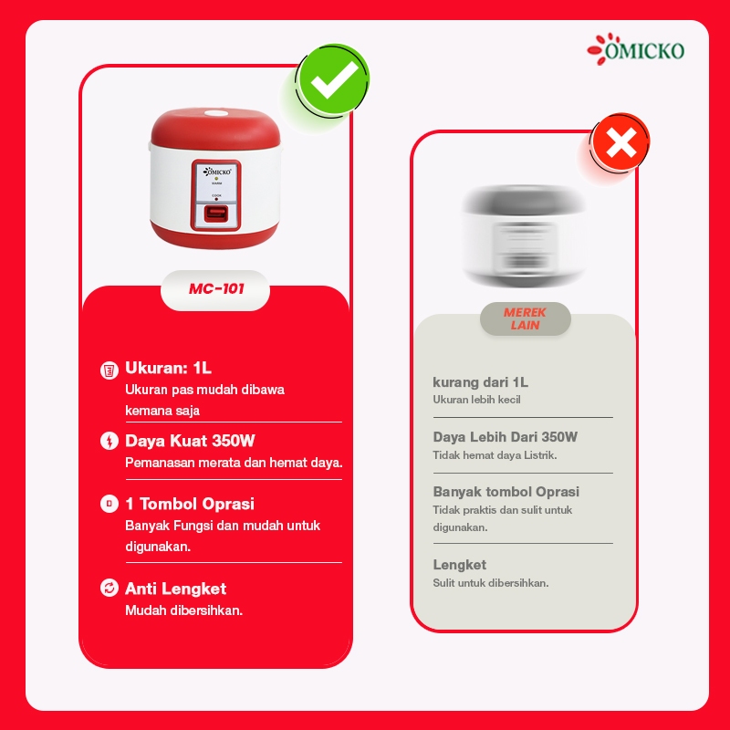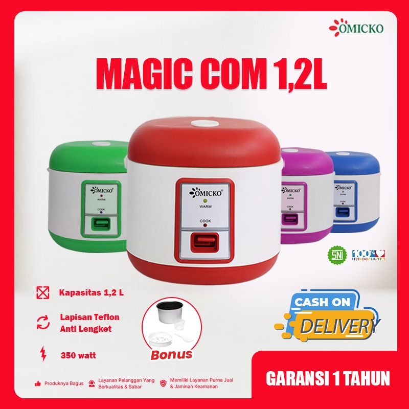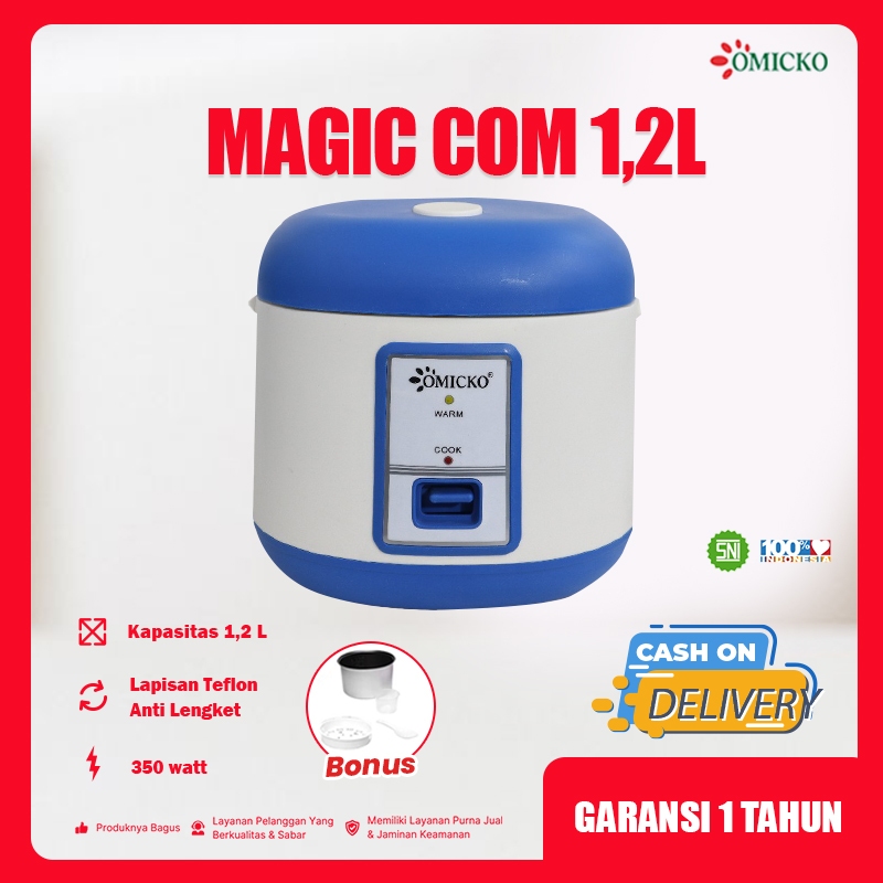 Magic Com OMICKO 1,2L – Rice Cooker Mini Teflon Anti Lengket 350 Watt + Bonus Wadah