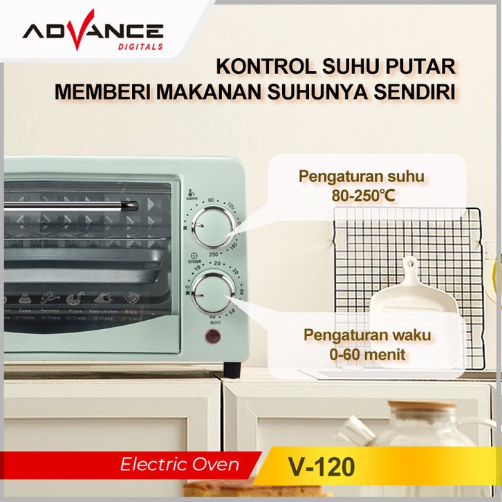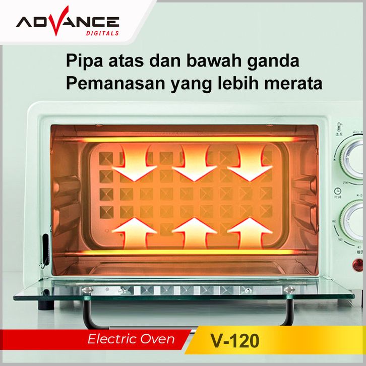[Mall] ADVANCE Oven Listrik V120 400 Low Watt Kapasitas 12 Liter Pemanas Atas Bawah Stainles Steel Best Seller