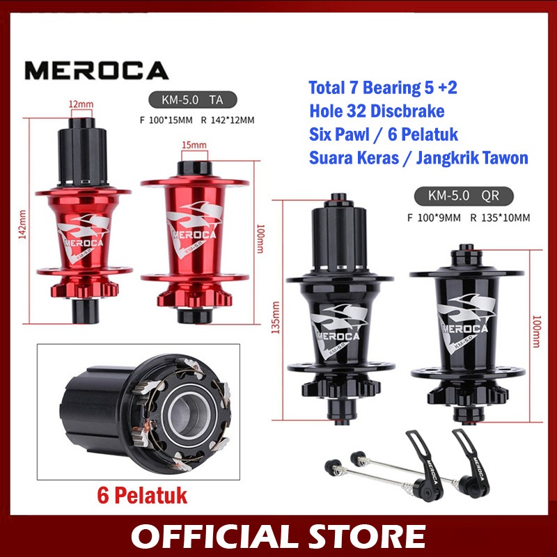 Meroca KM 5.0 Hub Freehub QR TA Thru Axle 5 + 2 Bearing Sixpawl 32H