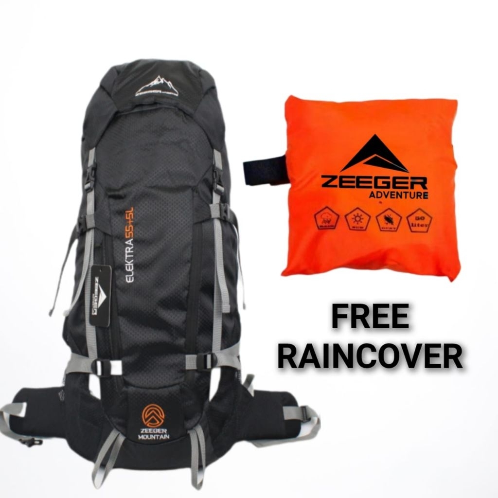BACKPACK CARRIER FIBER 55+5 LITER ORIGINAL ZEEGER PLUS RAINCOVER WATERPROOF # TAS RANSEL UNG # TAS HIKING