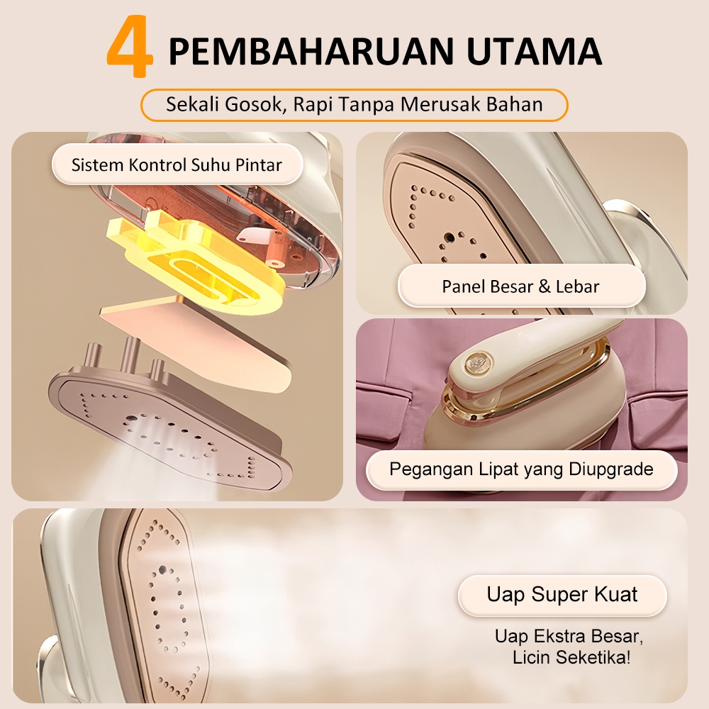 JVJH Setrika Uap Upgraded 2 in 1 Multifungsi Portable Steam Iron Handheld Setrika Mini Traveling Dry/Wet Ironing