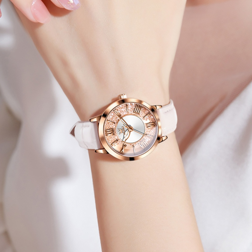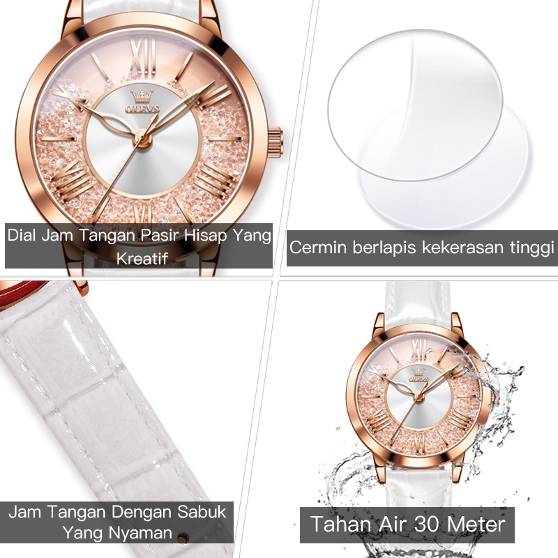 OLEVS Jam Tangan Wanita Original Kecil Anti Tahan Air Kulit Branded Analog Tampilan Pasir Hisap Women Watch