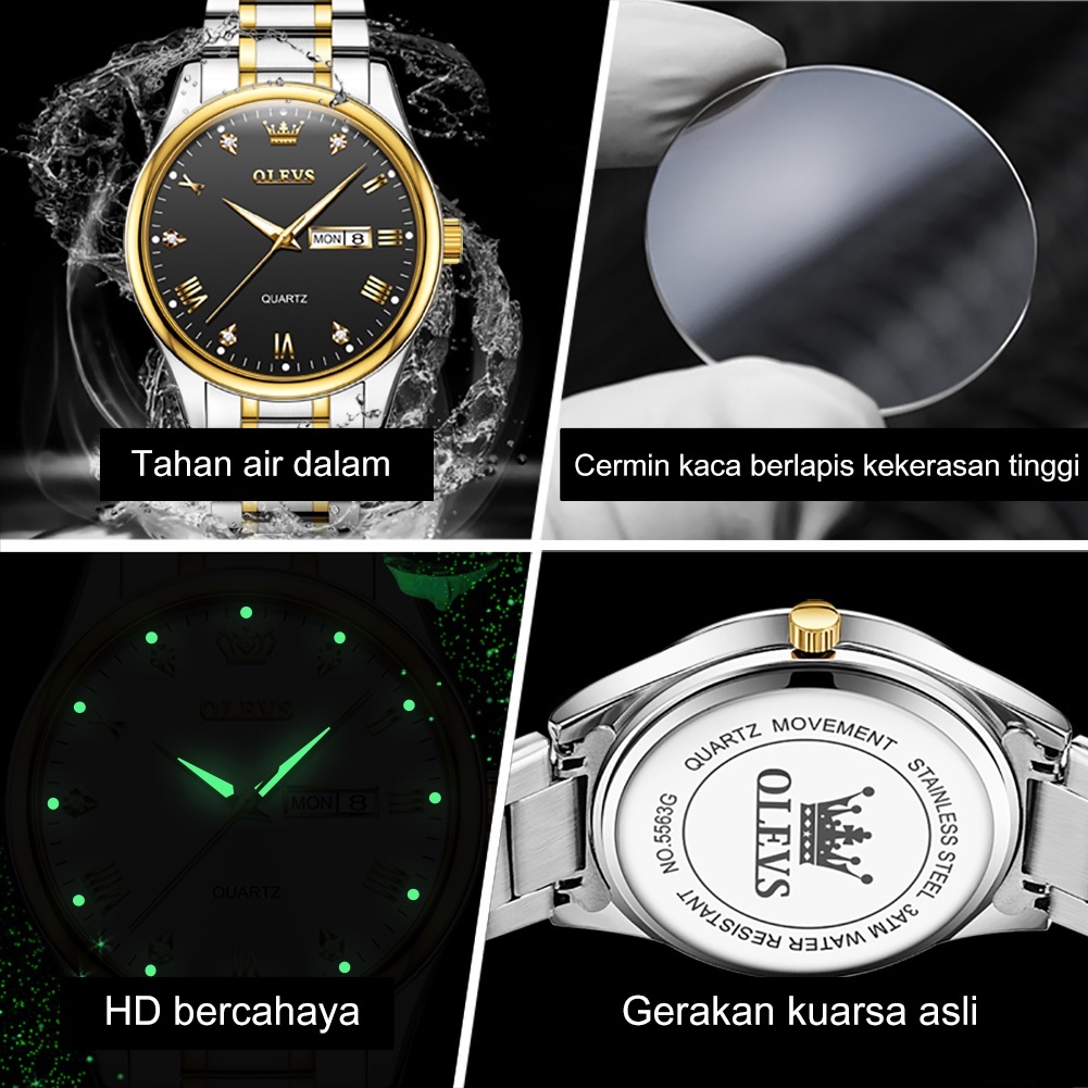 OLEVS Jam Tangan Couple Pasangan Anti Air Original Keren Elegan Terbaru Hitam Rantai Stainless Watch