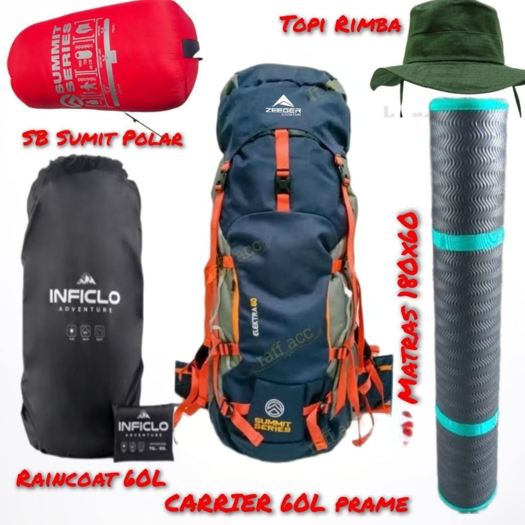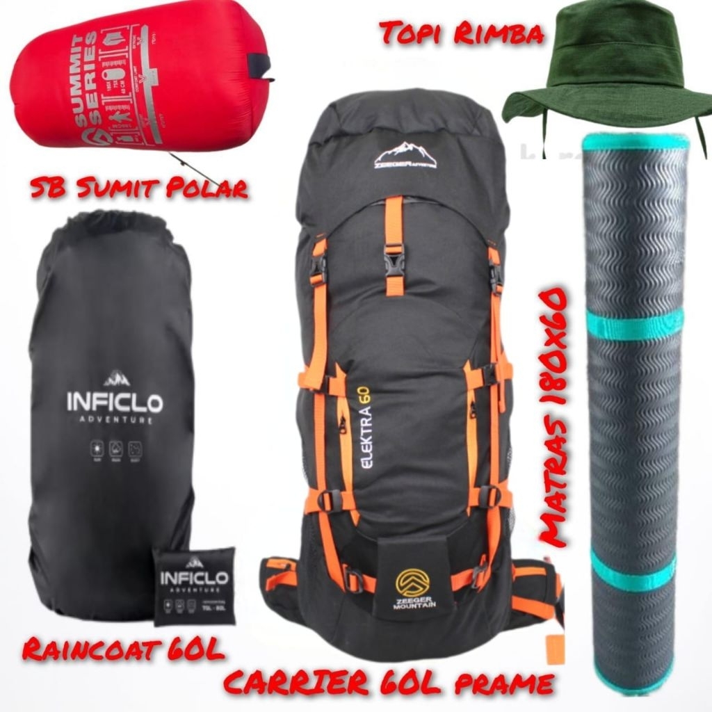Paket Murah 5 item Tas ung 60/65 Liter/Tas Ransel Hiking/Tas Carrier