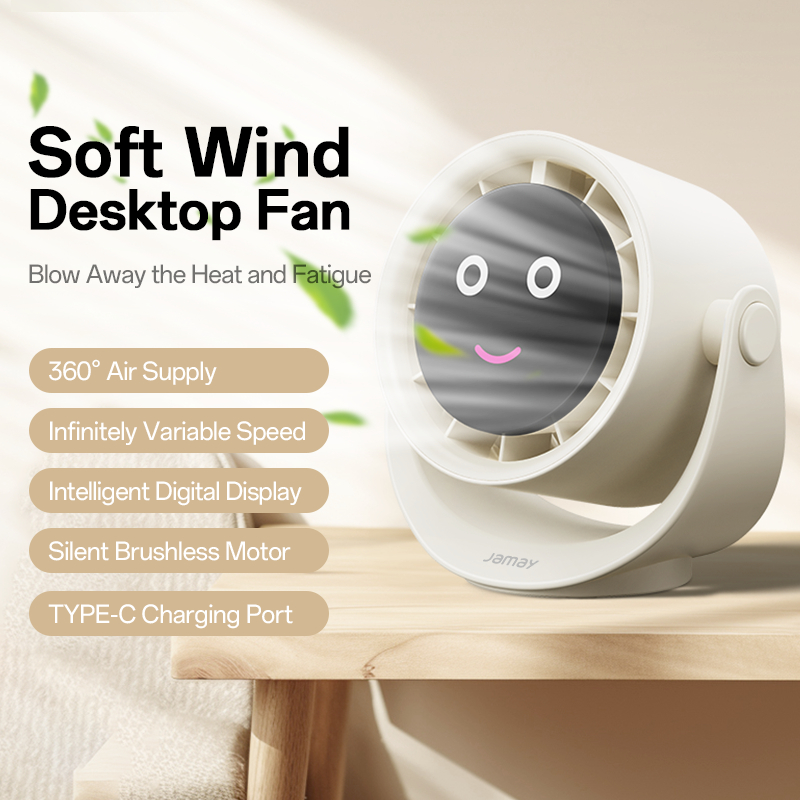 Jamay Kipas Angin 5000mAh 360° Rotation Bisu Strong Wind 100 Gear Wind Speed Kipas Dinding Digital Display Adjustable Turbo Kipas Meja Kipas F25