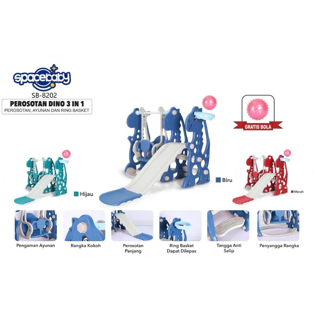 Spacebaby SB 8202 Perosotan Ayunan Anak Slide Swing Dino 3in1 Mainan Anak Indoor