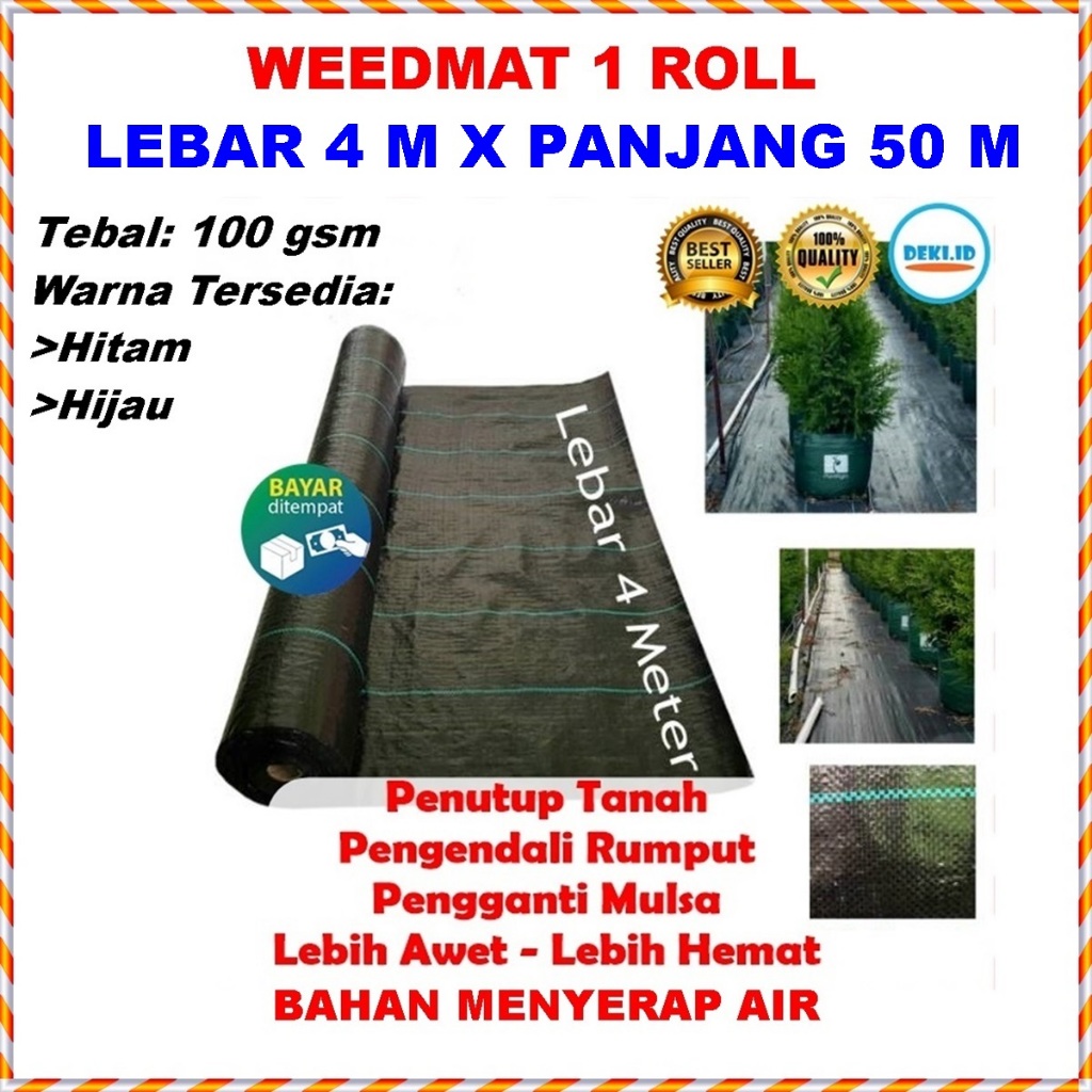 Weedmat Roll Lebar 4 M x Panjang 50 M Hitam Hijau Terpal Green House Woven Fabric Anti UV Mulsa Weed Mat