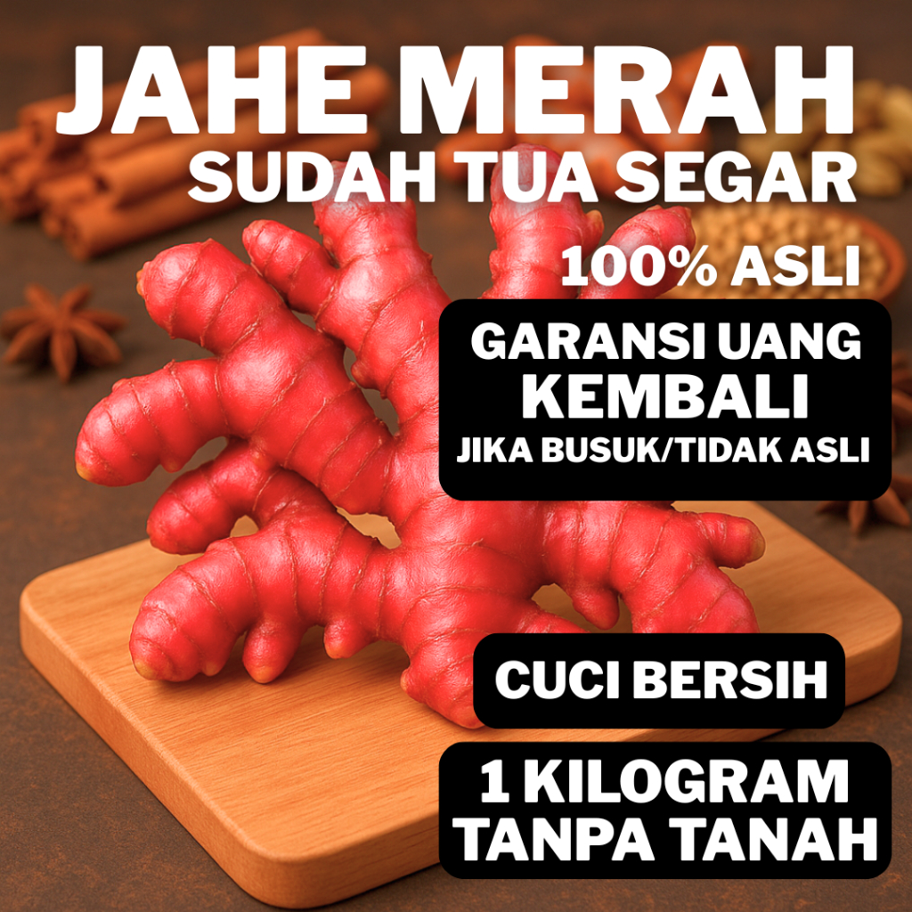 Jahe Merah Segar Asli 1 Kg Tua Sudah Dicuci Bersih Fresh Segar Rimpang Besar