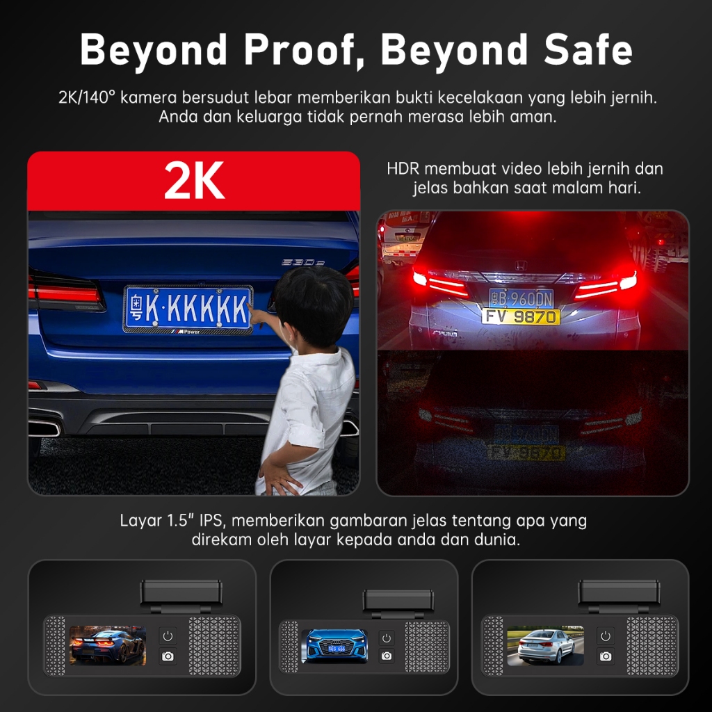 Cargoos O1 Dash Cam Mobil 2K 1440p GPS Wifi G-sensor Night Vision Kontrol Aplikasi Car Dashcam