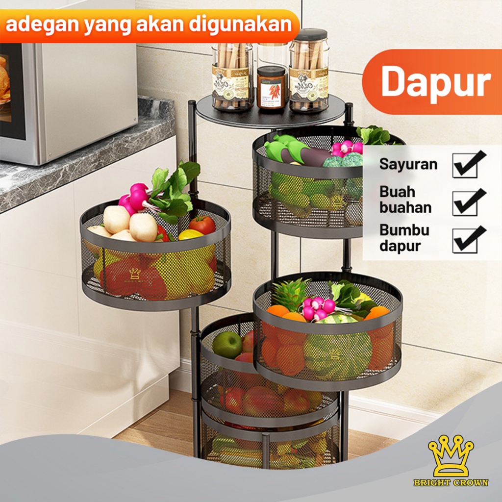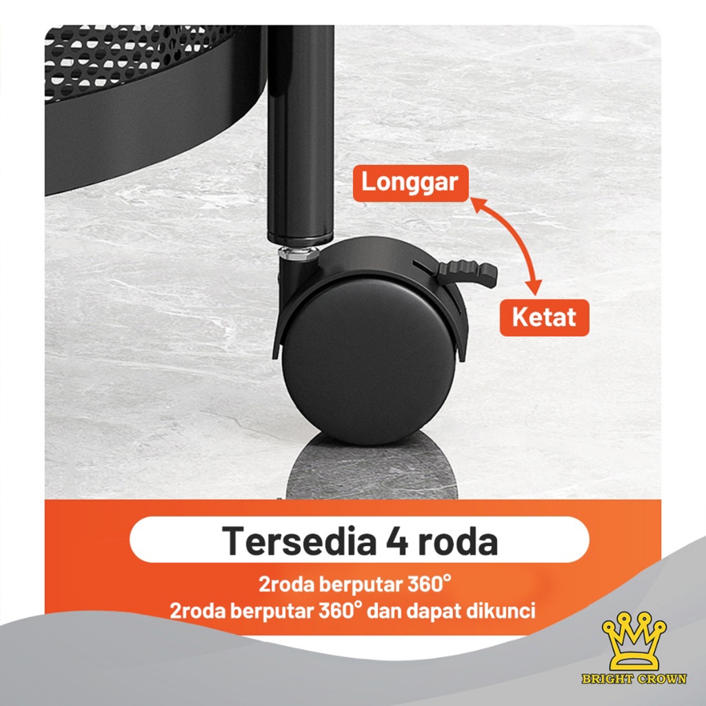 Bright Crown Rak Susun Besi Dapur Serbaguna Tingkat Model Bulat / Rak Troli Susun Putar Bahan Tebal