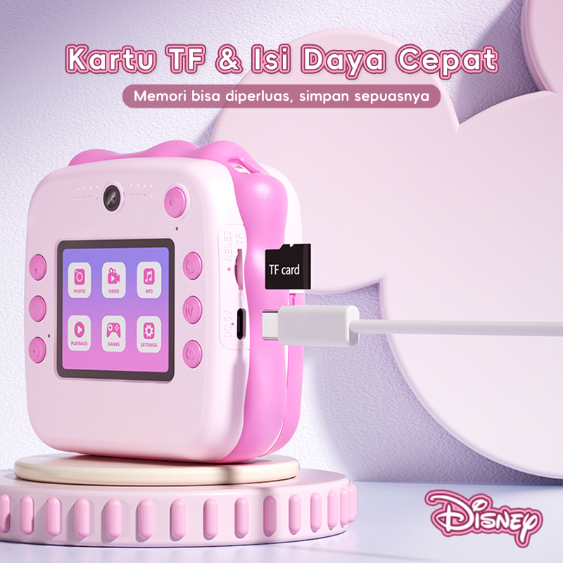 [100 PERSENOri Disney] BOOMii Kamera Anak Digital Instant Print Mini 2.4" Layar IPS HD 1080P Disney Mainan