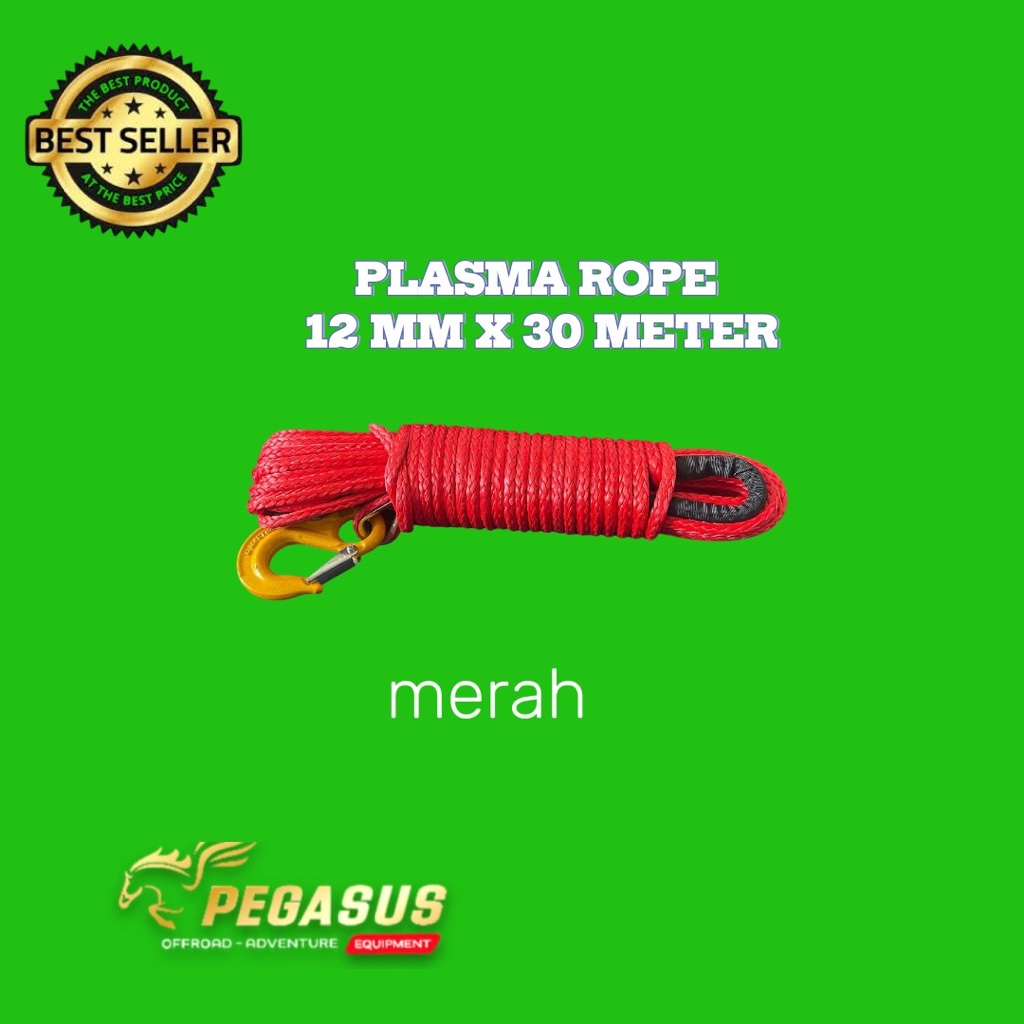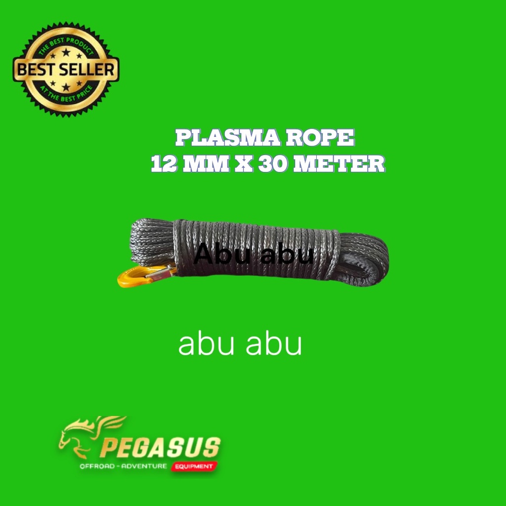Winch Rope plasma 12mm x 30 meter offroad Atv perahu witch hook