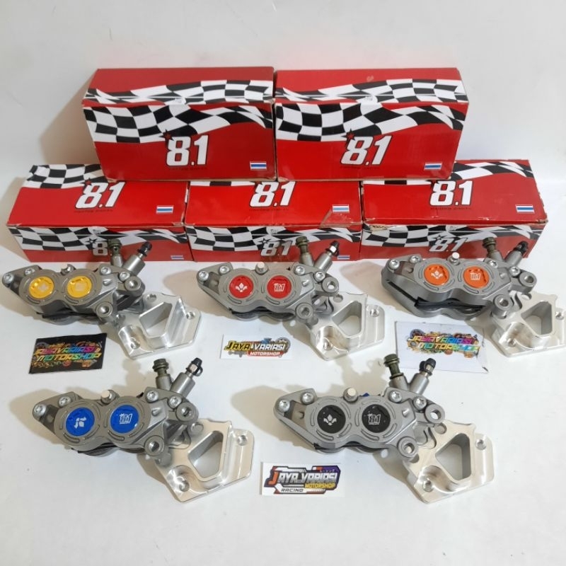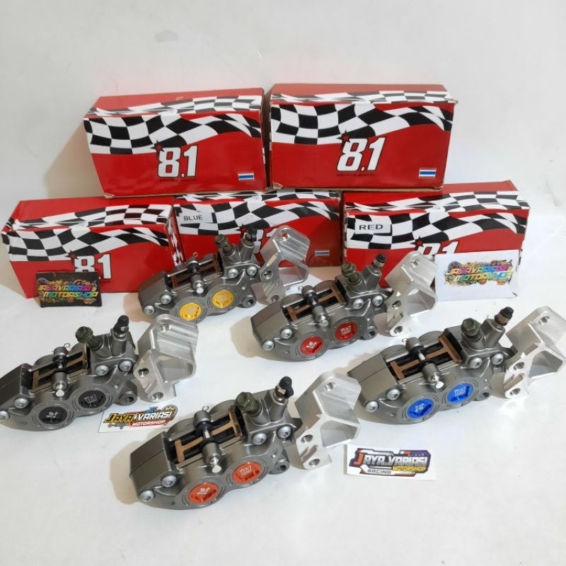 NEW KALIPER BIGPOT FORMULA 8.1 RACING PARTS 4PISTON 4P AXIAL KANAN COIN CNC WARNA + BREKET DEPAN DISC CAKRAM STANDAR PNP