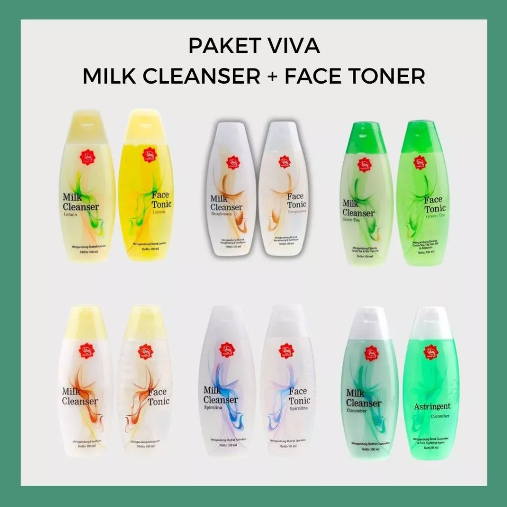 Paket Viva Milk Cleanser 100Ml + Face Tonic 100Ml | Spirulina | Bengkoang | Original |