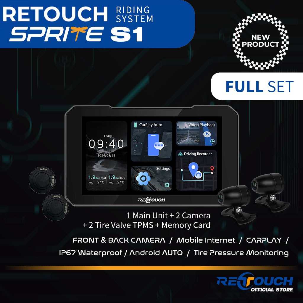 Retouch Riding System Sprite S1 | Sistem Riding Cerdas dengan Multifungsi| Layar 5 inch | Kamera Motor 140 derajat |Waterproof ipx7 | Riding system untuk semua motor |
