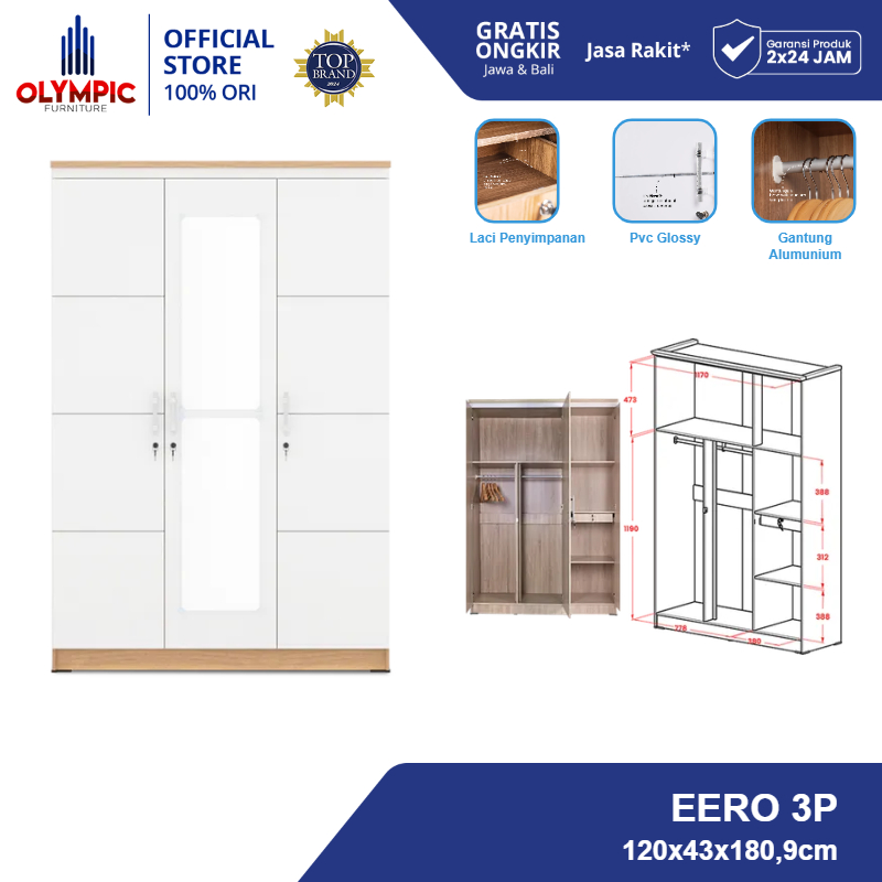 Olympic Lemari Pakaian 3 Pintu / Lemari Baju 3 Pintu / LP EERO 3P