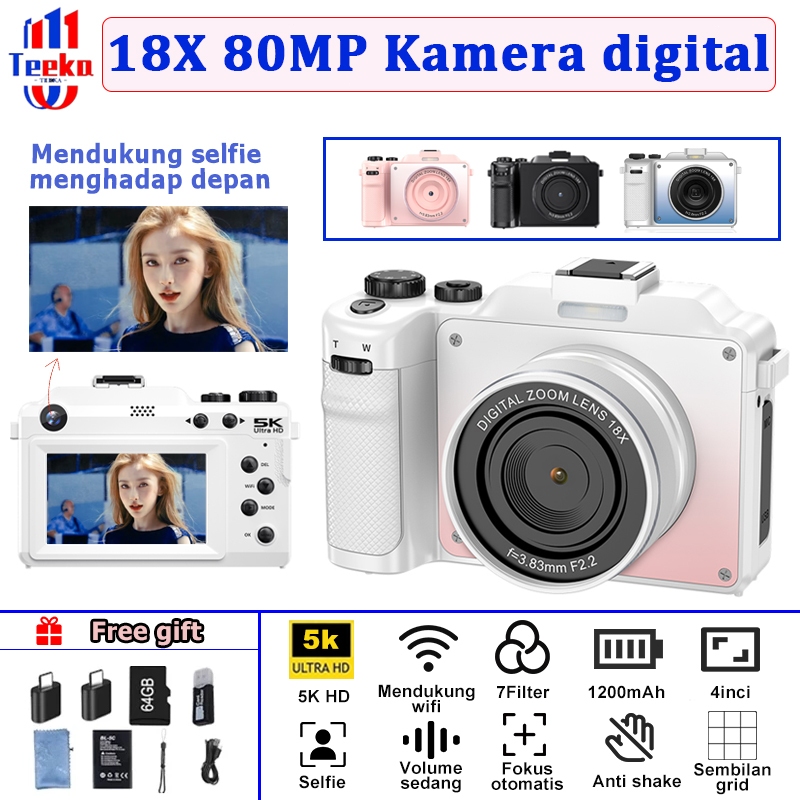 TEEKA [X9] 80MP Wifi Digital Camera 5K Video 18X Digital Zoom Dengan Dukungan Selfie Koneksi WIFI untuk Hadiah Pemula Teeke Kamera Digital 18X 80MP【Dengan Kartu 64GB】