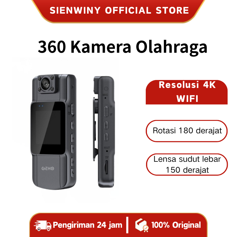【SIENWINY】Wifi action camera 4k Kamera Motor VLog Cam 360 Kamera Olahraga Untuk Merekam Rapat Kamera Tubuh Mini Camera Full HD 1080p