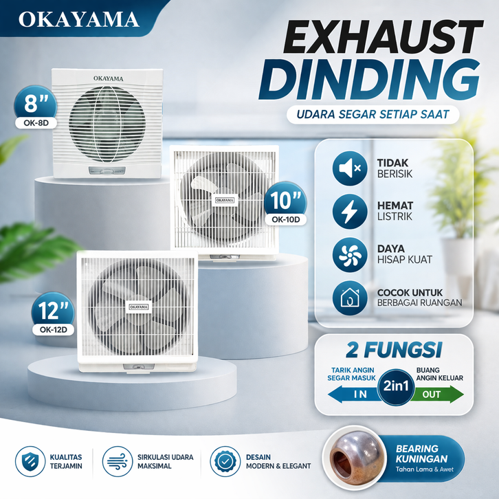 Exhaust Fan Dinding OKAYAMA Blower Hisap Asap Dan Udara Penyedot Ruangan Dapur Kamar Mandi 8 10 12 Inch OK8D OK10D OK12