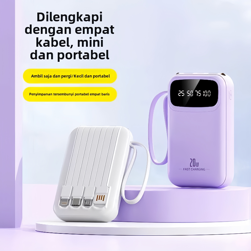 GUKOO Power Bank 20000mAh Fast Charging, 4 Kabel USB Included - Bisa untuk Semua Gadget