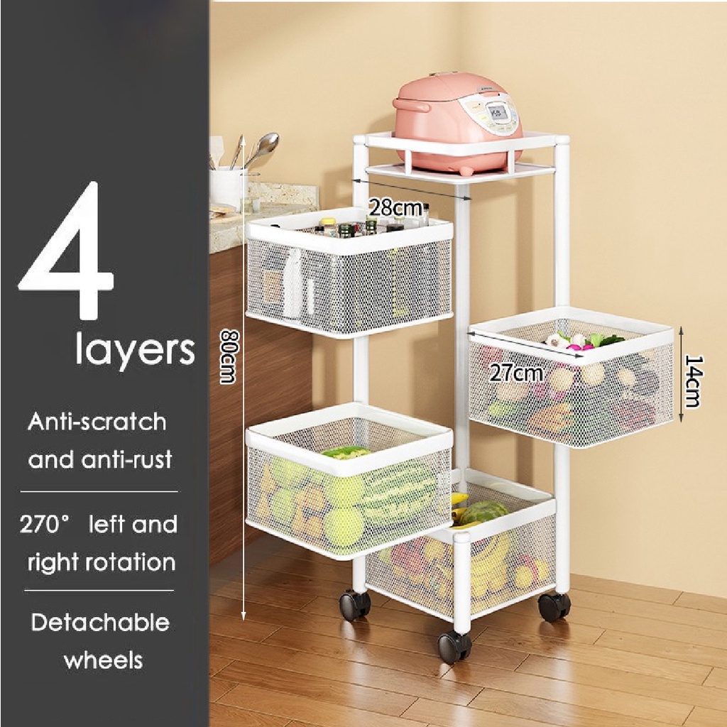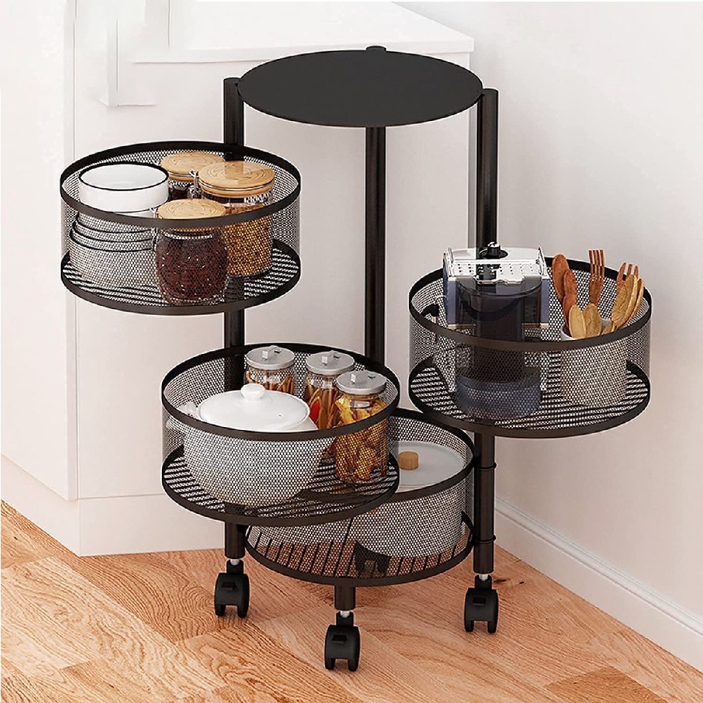 KS Carbon Steel Storage Rak Roda Troli Putar Full Baja Kotak/Bulat Susun Tingkat Serbaguna