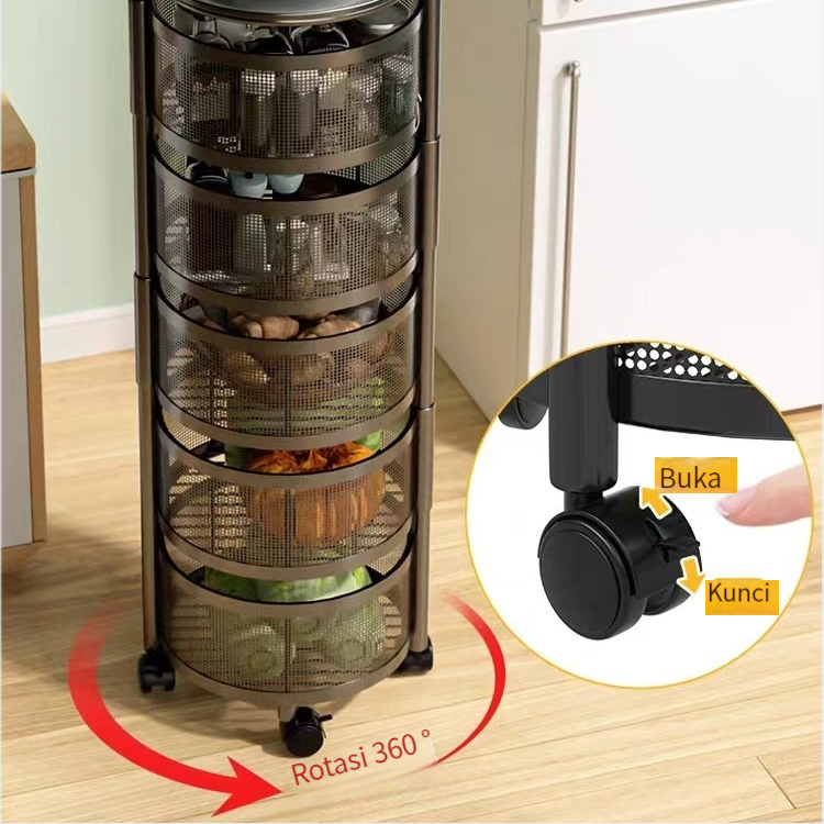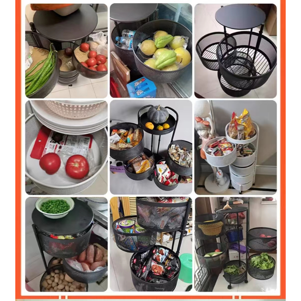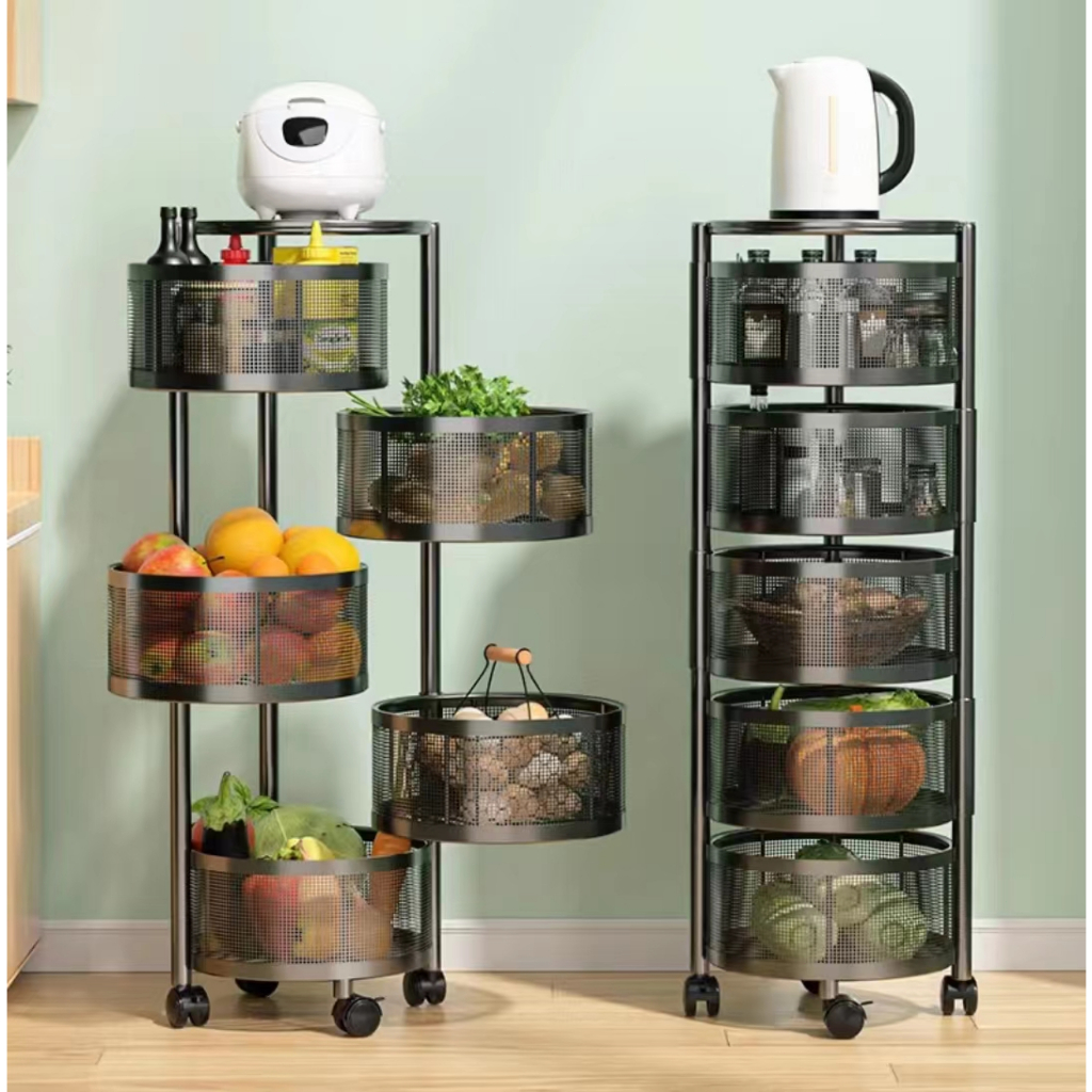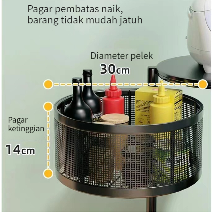 Rak Troli Susun Putar Besi Dapur Serbaguna Tingkat Model Bulat Rotary Multilayer Organizer