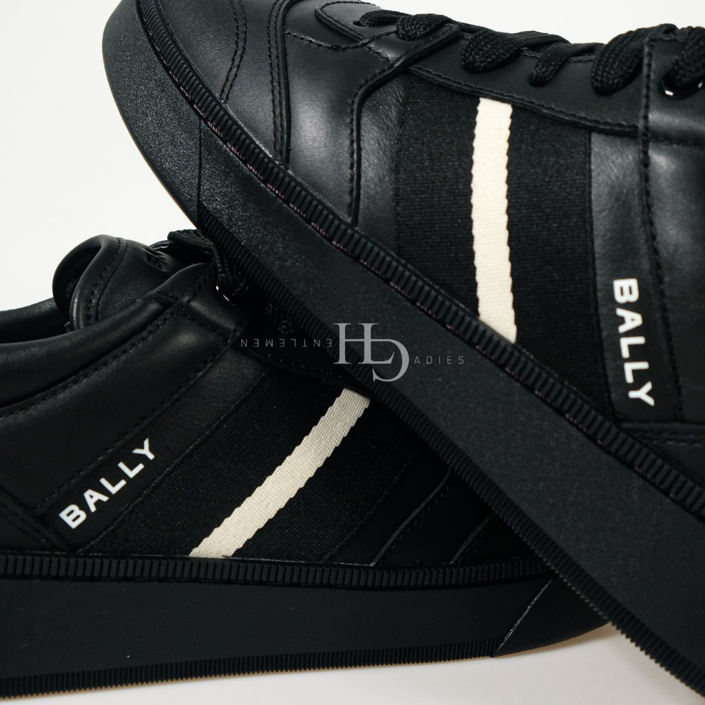 Bally Rebby Leather Sneakers Black with Black/White Stripe (MSK08YVT179I9S1)