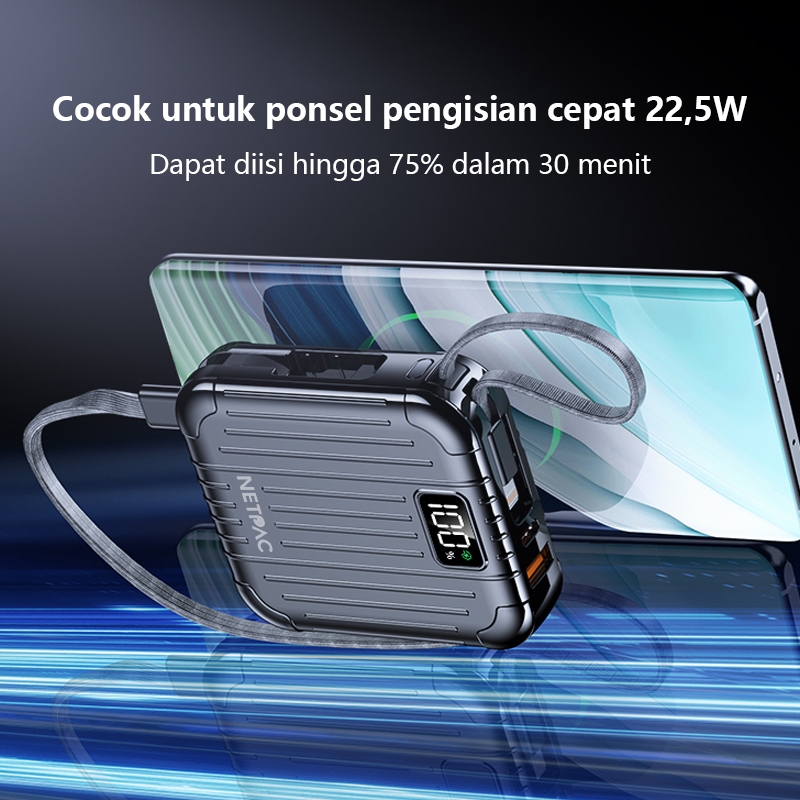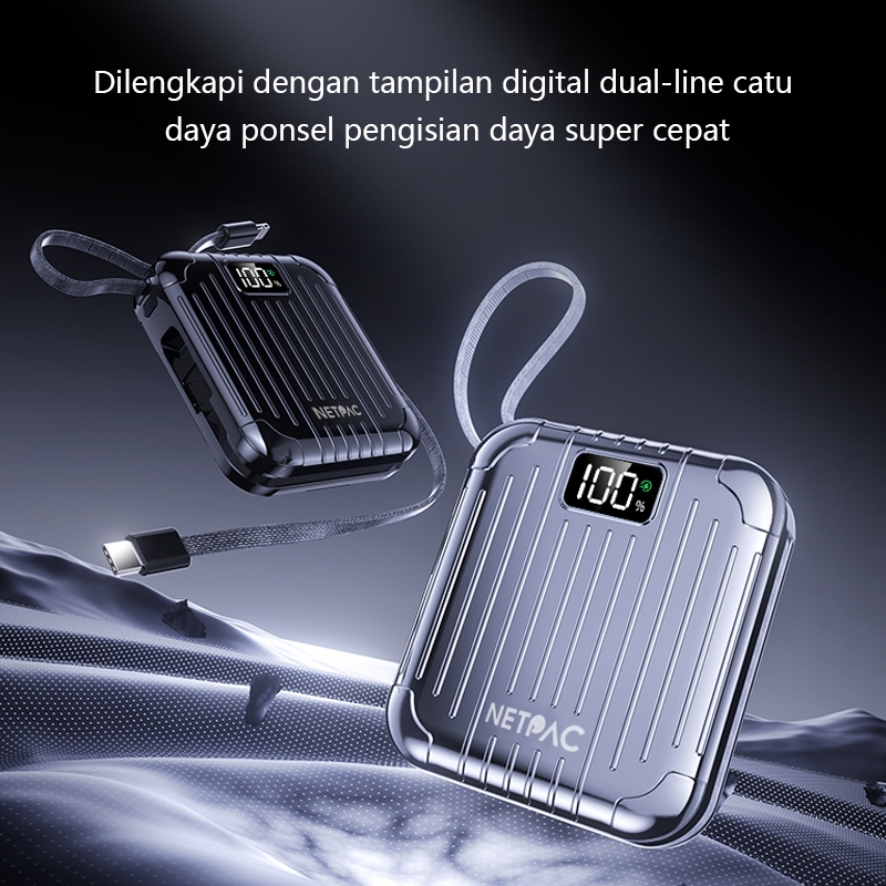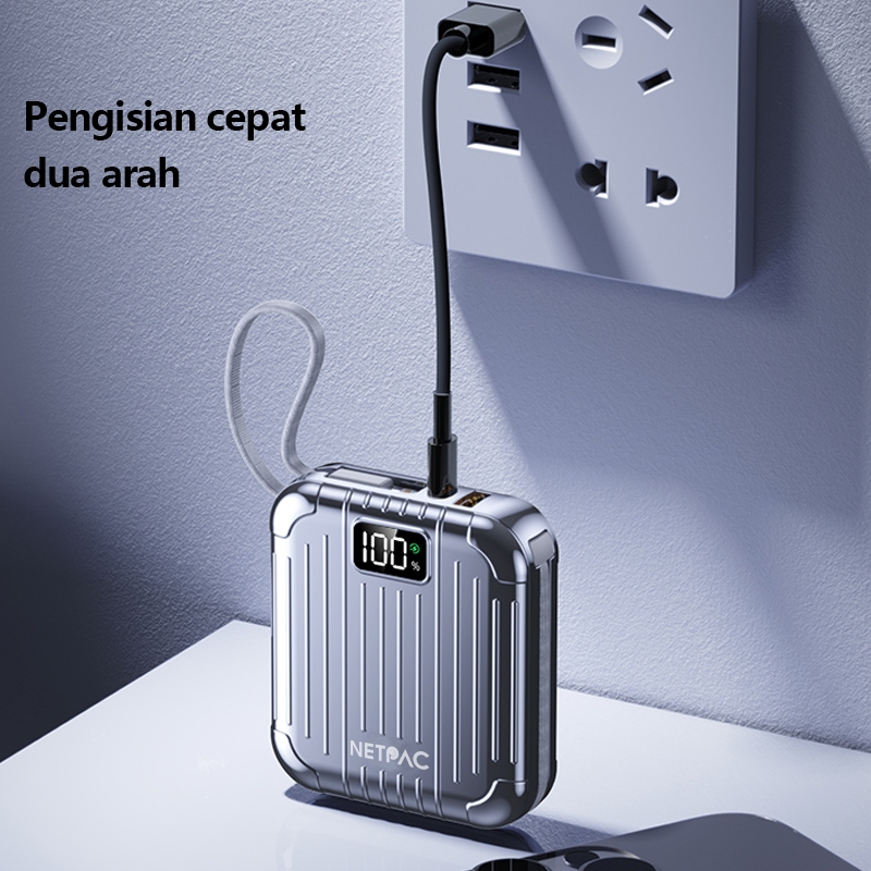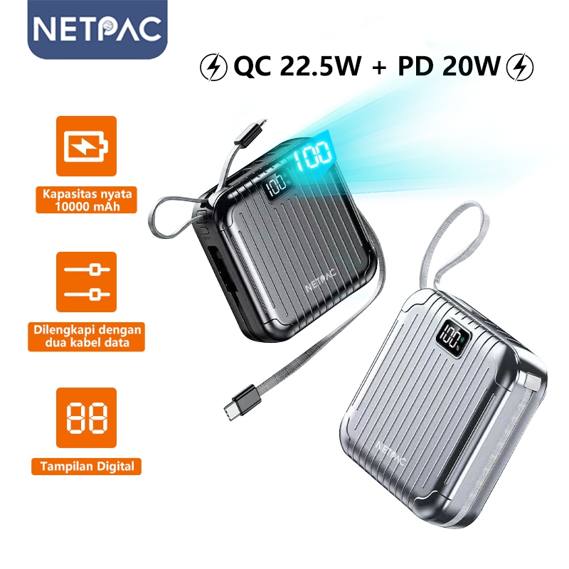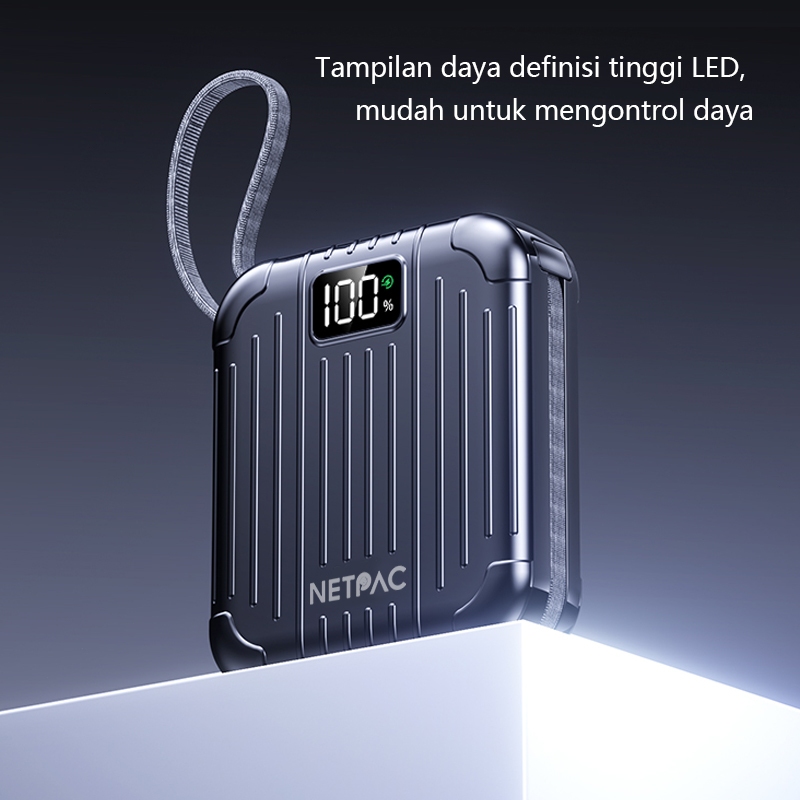 NETPAC Powerbank 10000mAh Fast Charging 22.5W Real Capacity Business Classic Suitcase Lightweight LED with Type C Lightning