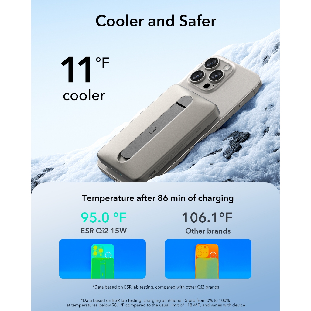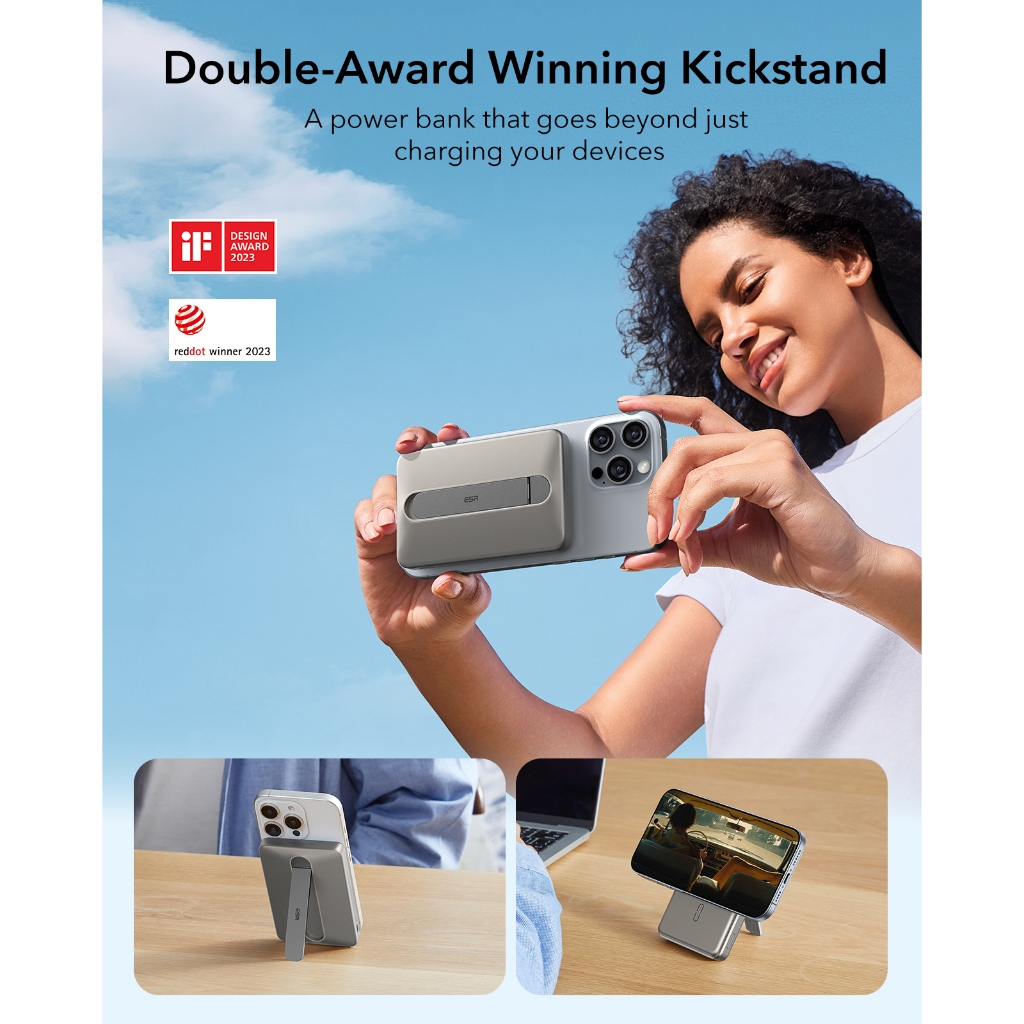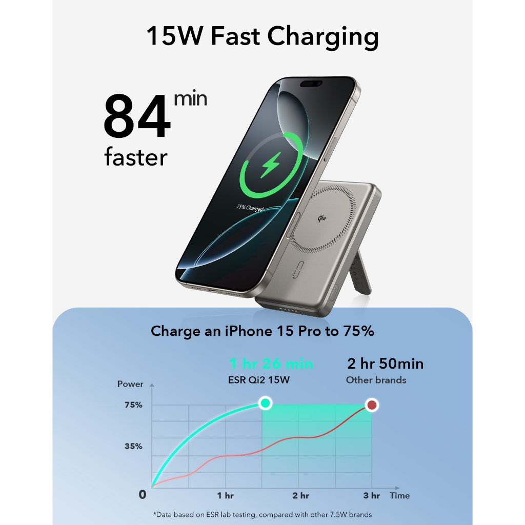 ESR Magslim Kickstand Qi2 Magsafe Powerbank 5000mAh 15W Wireless Charging Magnetic USB Type C Fast Charging