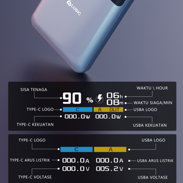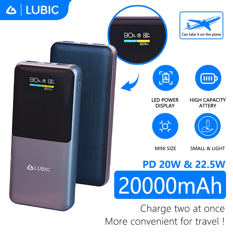 LUBIC PowerBank 20000mAh Fast Charging 22.5W+PD20W Dual USB Type C TFT Display