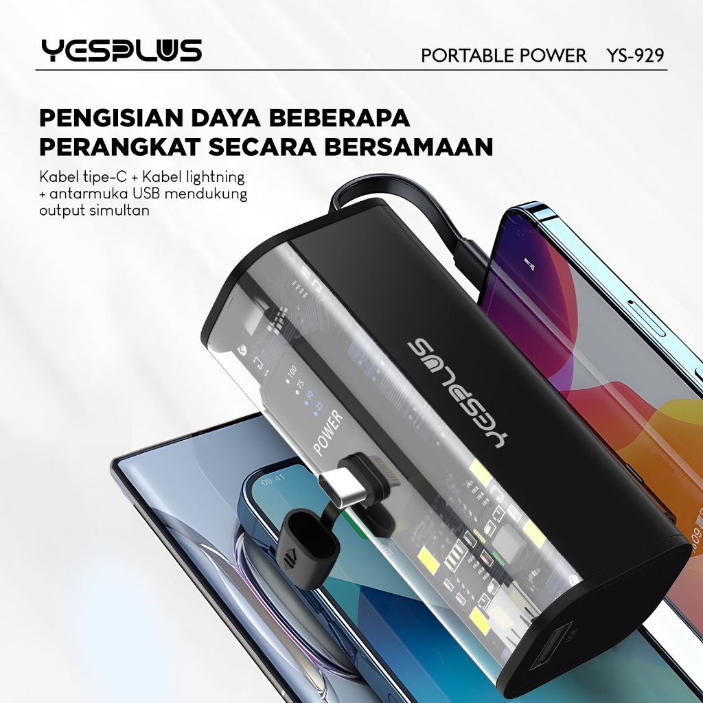 New Mini Portable Powerbank Transparan YESPLUS YS-929 Fast Charging Compatible PD 37W 5000MAH