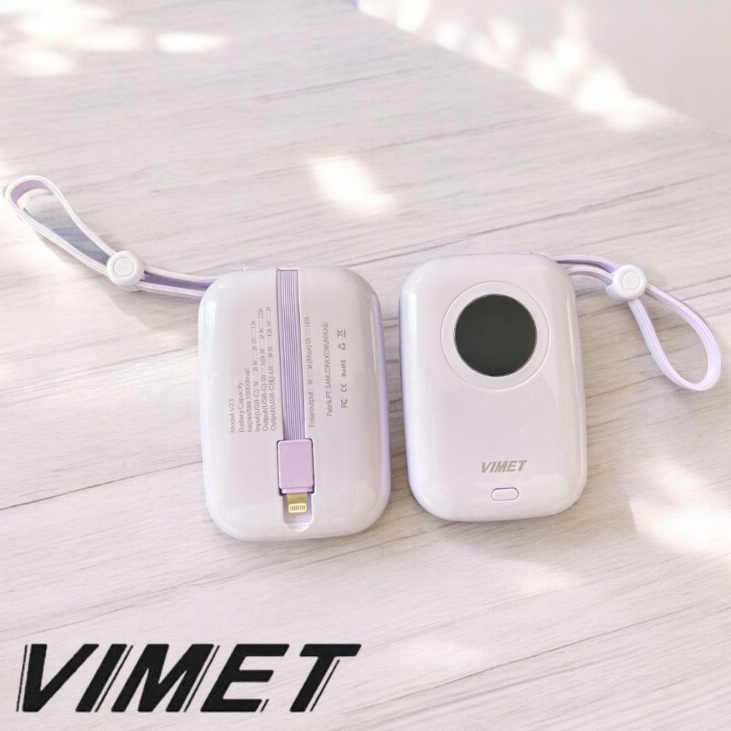 VIMET V23 Powerbank 10000mAh Original VIMET with Build in 2 Cable Mini Portable / Powerbank Vimet V23 Keren dengan Pilihan Warna Pastel
