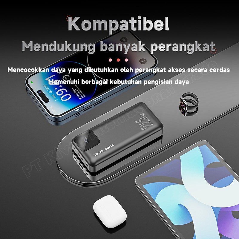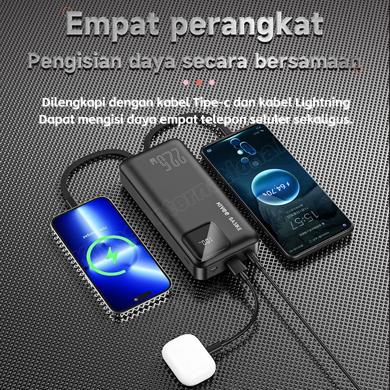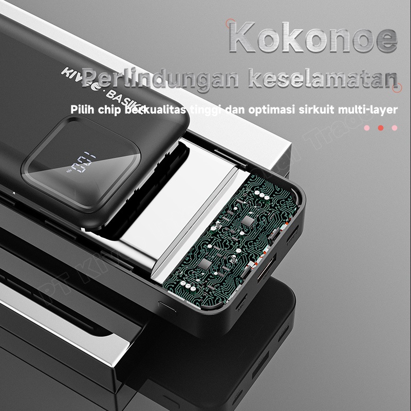 BASIKE Powerbank 20000 mah Fast Charging 22.5W 2 masukan 4 keluaran Murah Mini LCD with Kabel Data