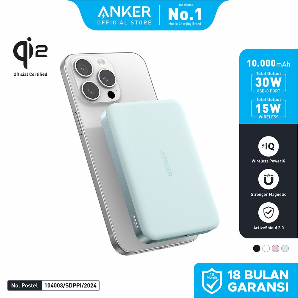 Anker MagGo Wireless Power Bank Magnetic Magsafe 15W Ultra slim, Qi2 Fast Charging Type C PD 10000 mAh - A1664