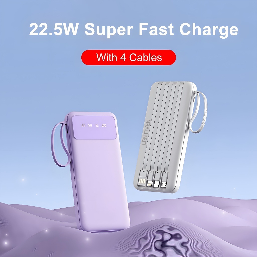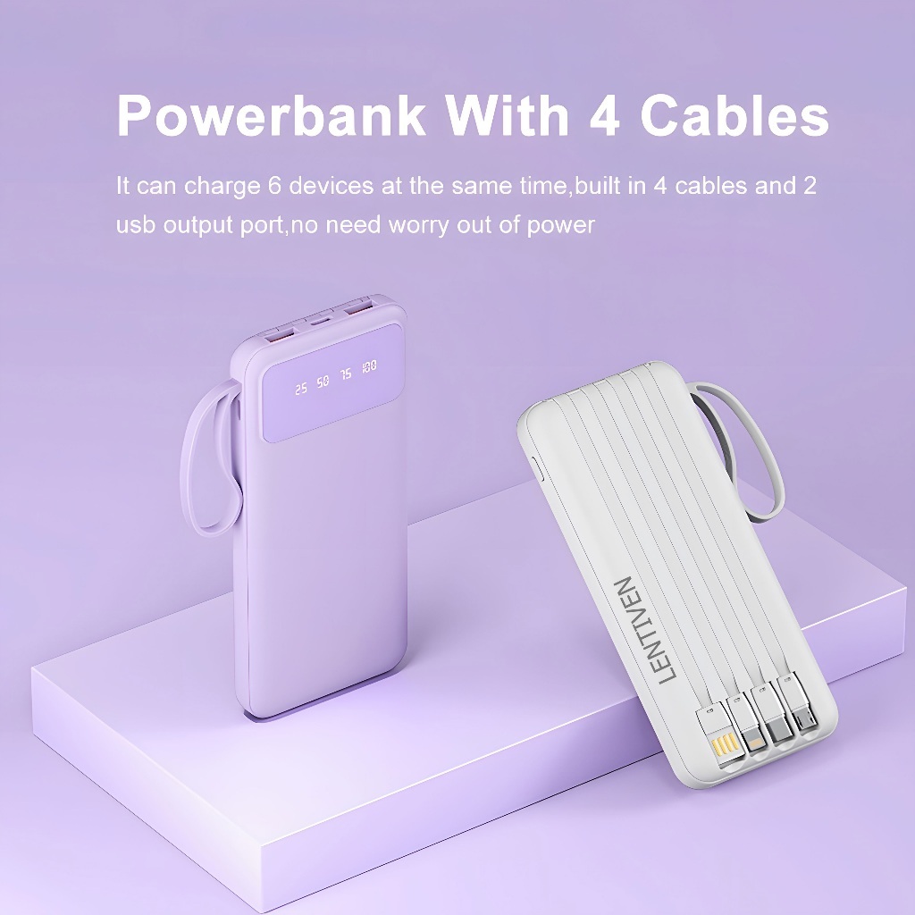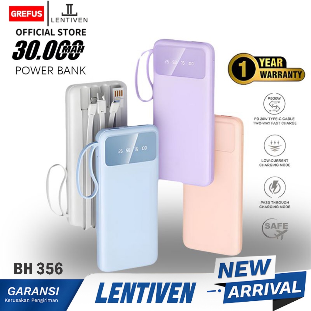 GREFUS LENTIVEN 30000 mAh Powerbank Mini Fast Charging 4 KABEL Lightning & Type C For Iphone Led Display BH356