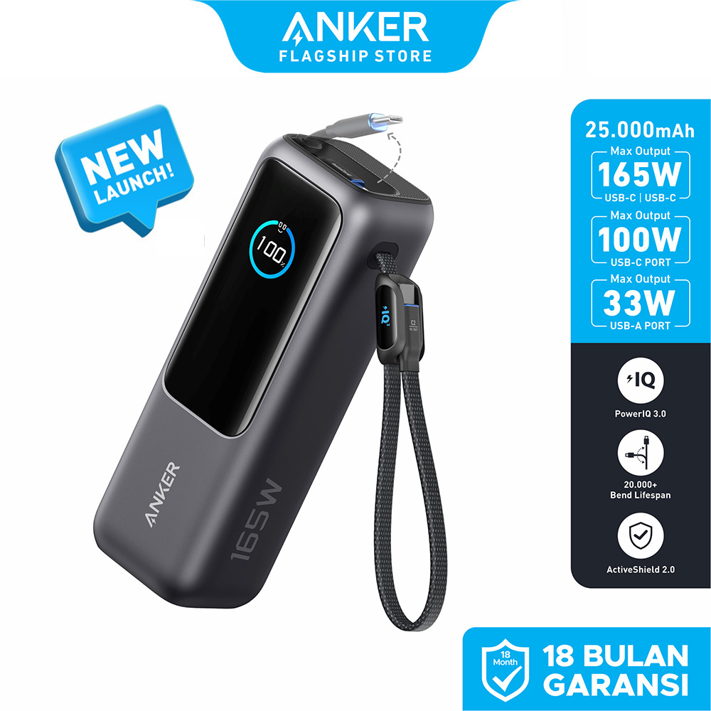 Anker Digital Display 140W Charger with Type C Cable and Powerbank 25.000 mAh 165W Built-in Retractable Cable GAN Fast Charging PPS PD3.1