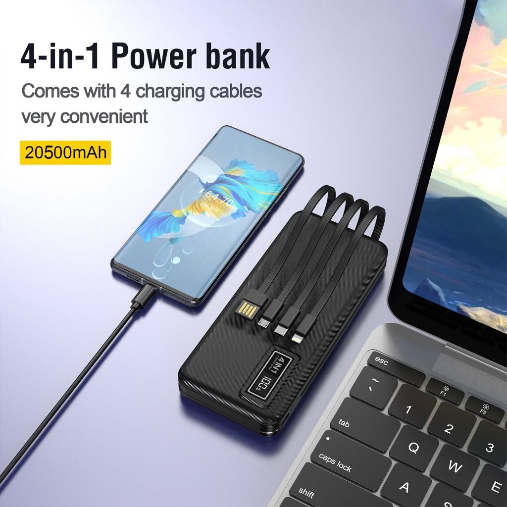 Delcell Velo Power bank 20500mAh 10500mAh Led Digital With Cable Fast Charge