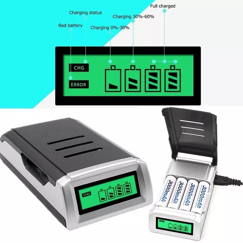 Smart Intelligent LCD 4 Slot Charger Baterai for C905W AA , AAA NiMh NiCd