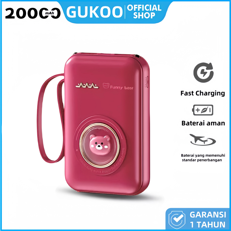 【GUKOO】PowerBank 20000mAh Cute Mini Fast Charging With 4 Kabel Data usb Type C Micro LED senter
