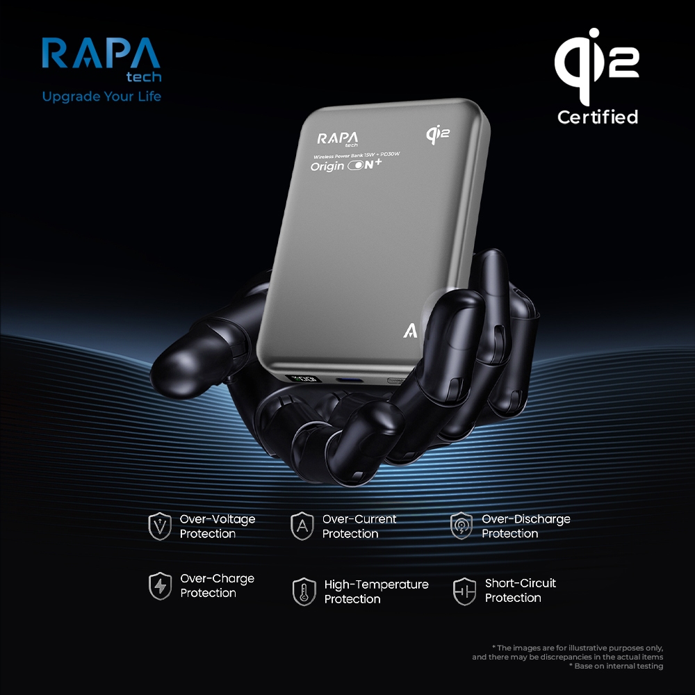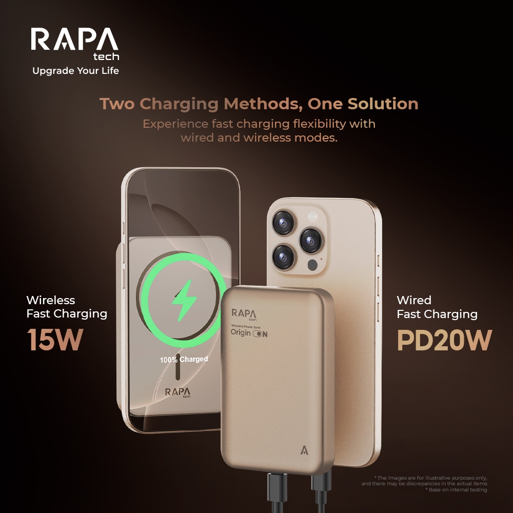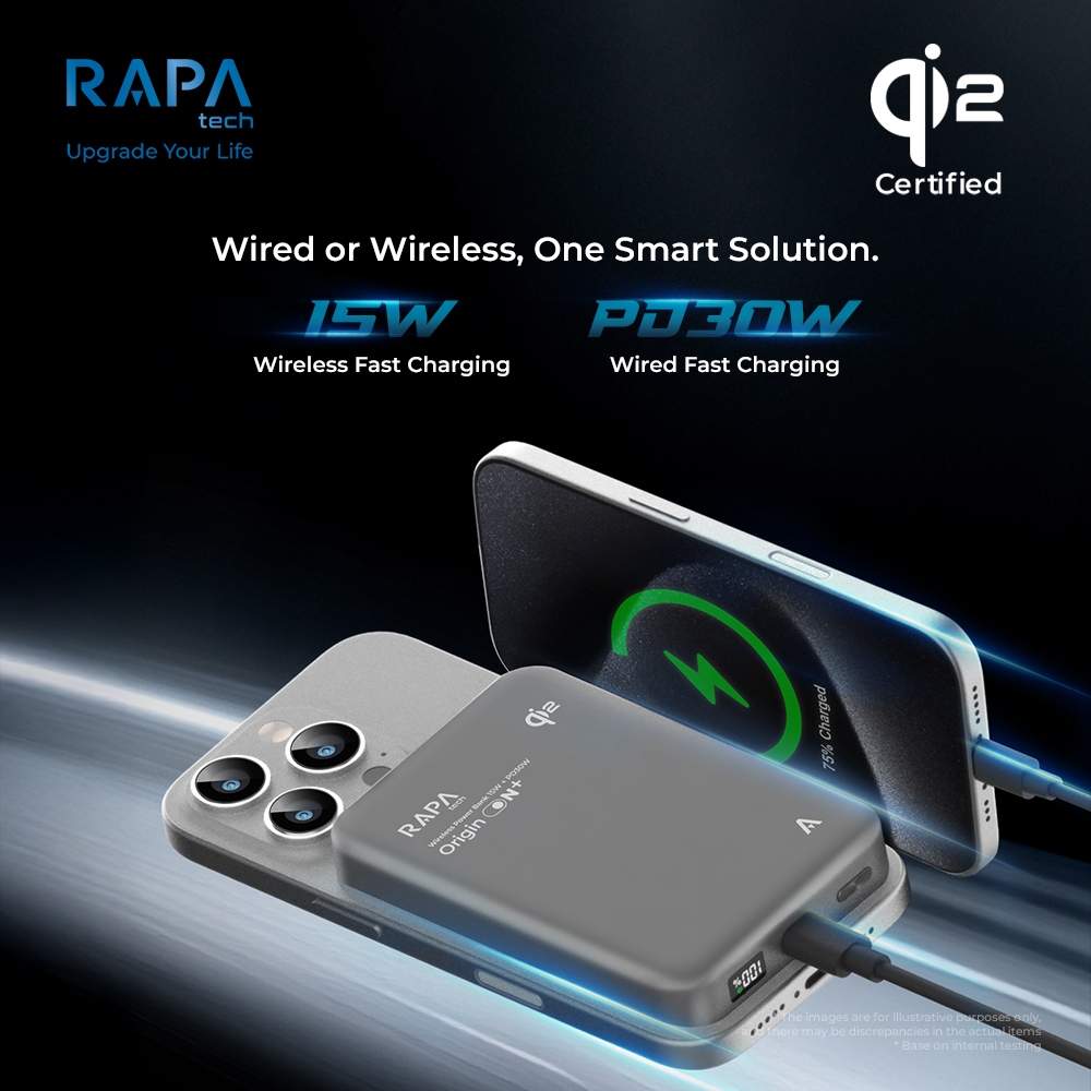RAPAtech Powerbank Origin On / Origin Pro / ON+ Qi2 LED 10000 mAh Wireless Fast Charging 15 W + PD 20W Powerbank iPhone Fast Charging