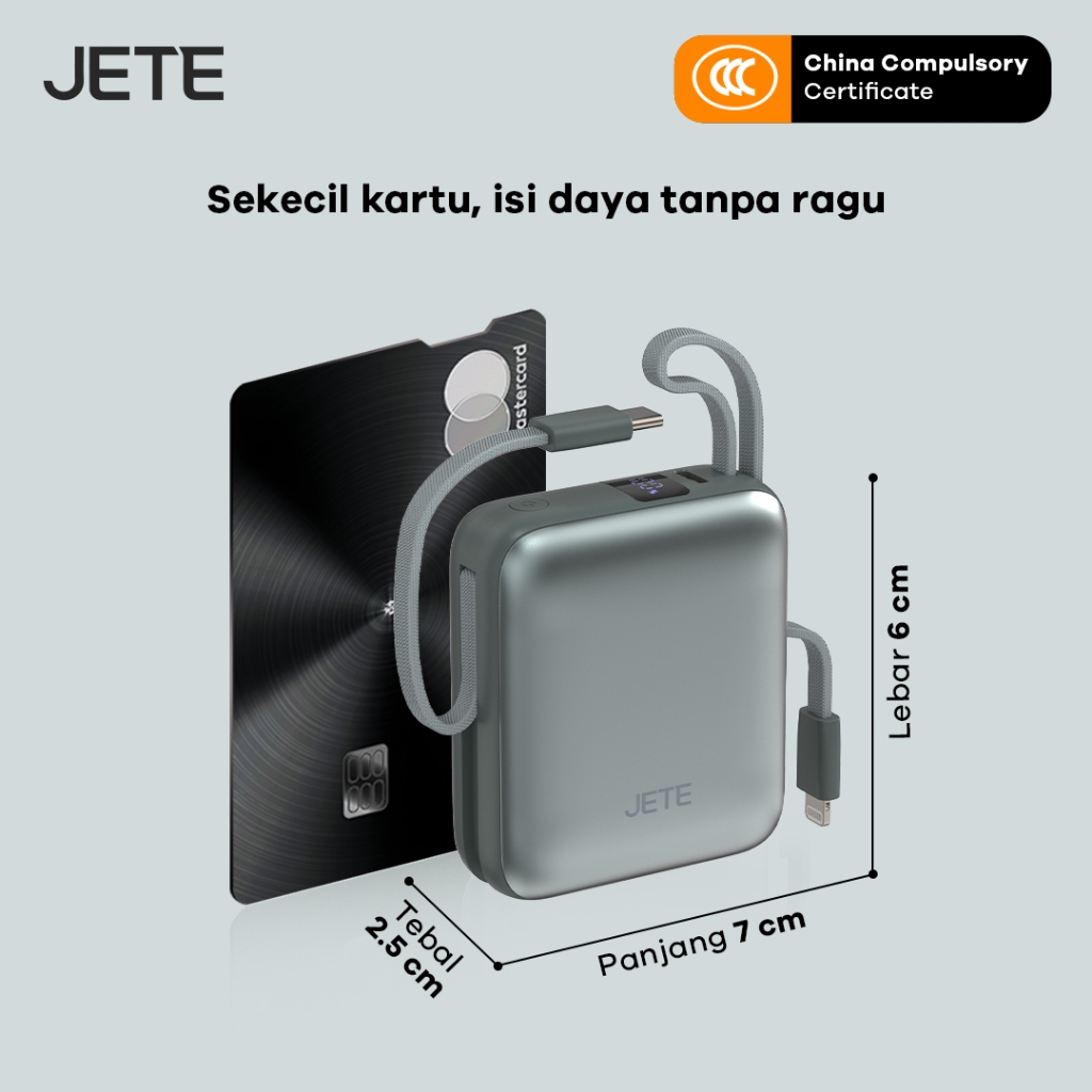 【Sertifikat CCC】JETE B7 Powerbank 10000mAh 22.5W Fast Charging with LED Display Dual Cable USB C Lightning Power Bank