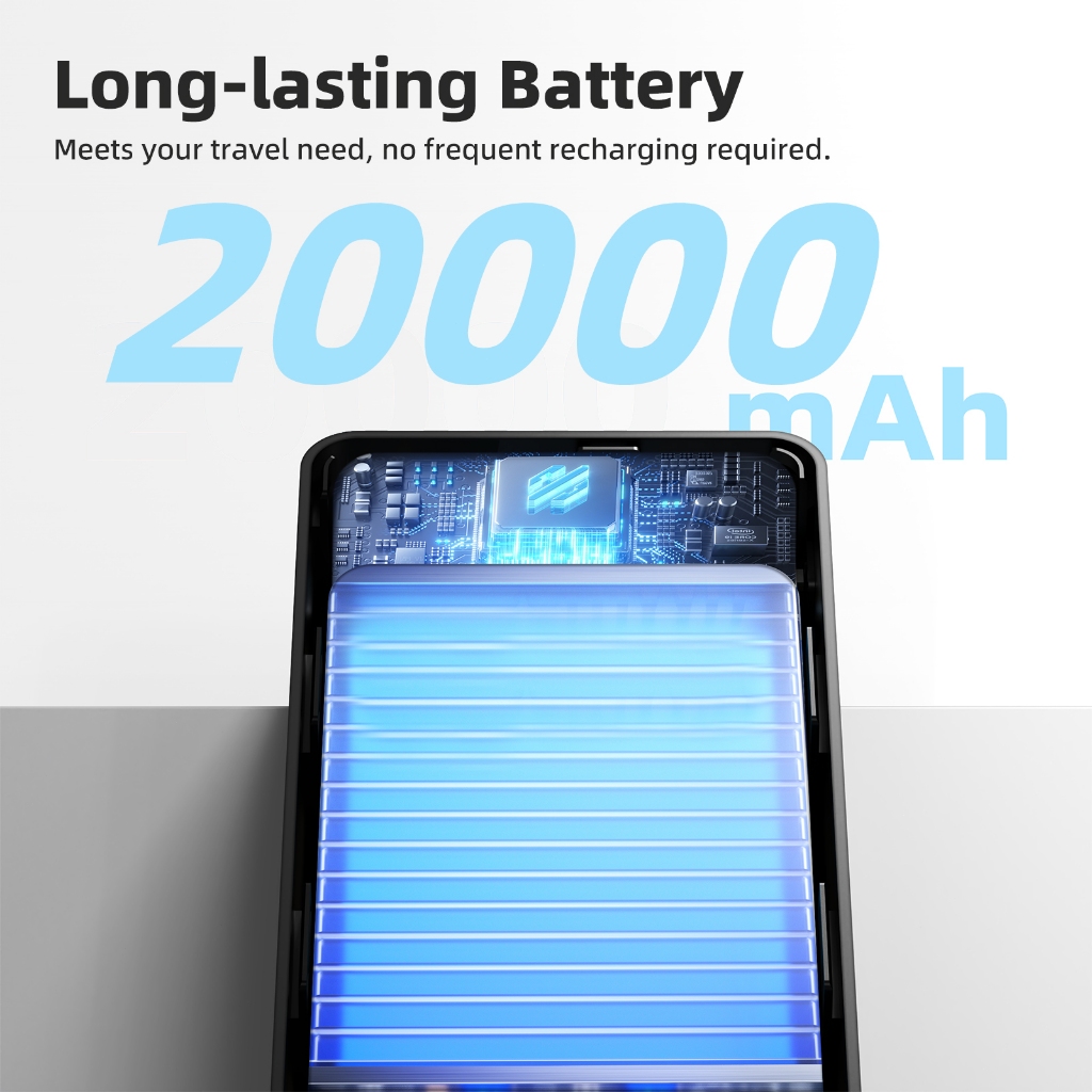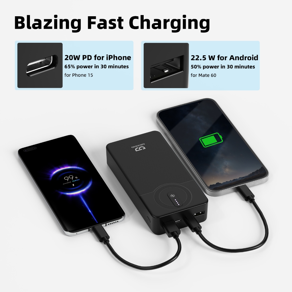 GOOJODOQ 20000mAh Power Bank USB Fast Charging Portable LED Light Charger 22.5W for Phone Pad Fan